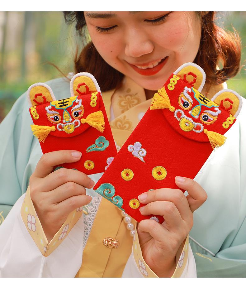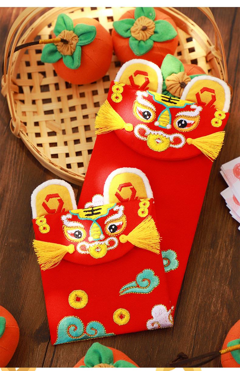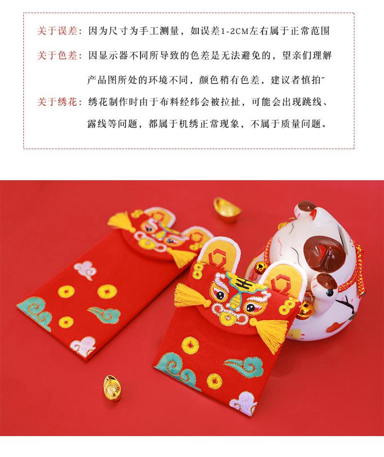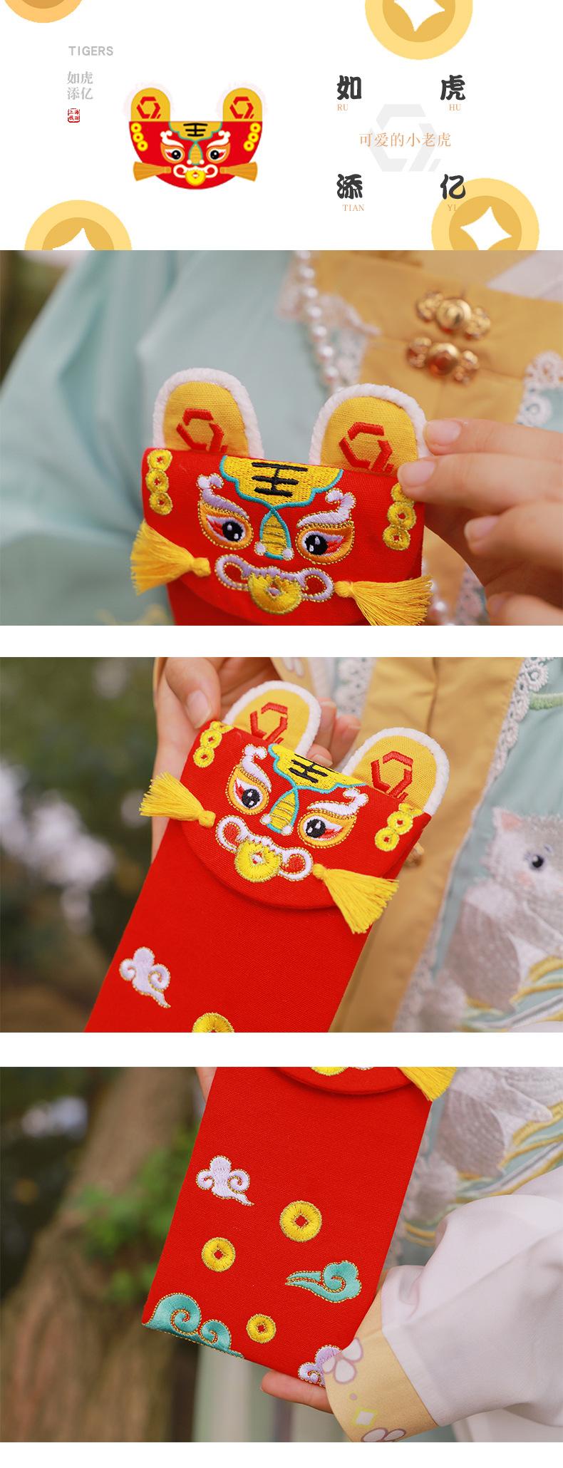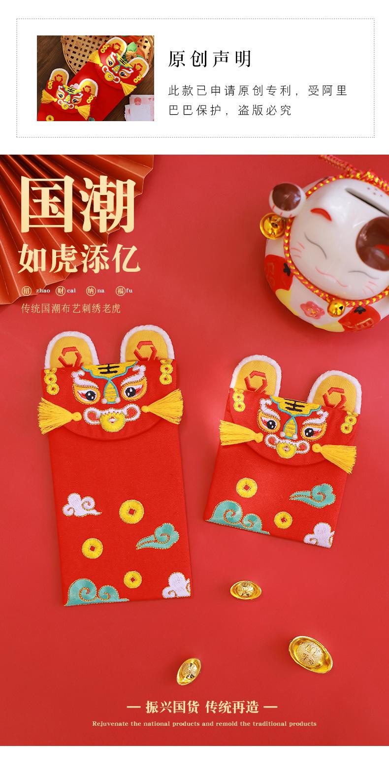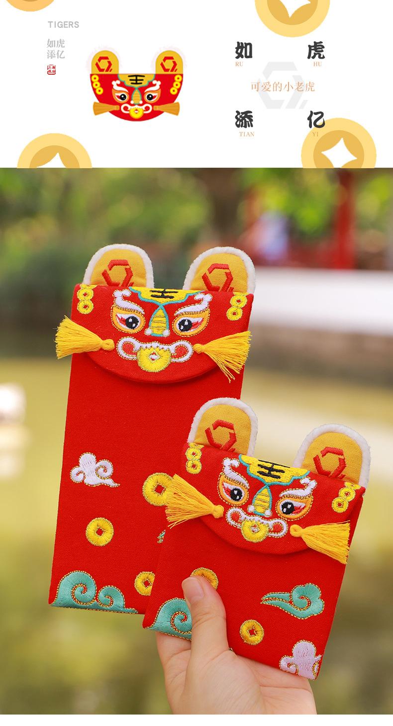 [Qian Li] Sobre rojo bordado de Año Nuevo con diseño creativo de tigre rojo, bolsa bordada con sello de beneficio de mil yuanes, venta al por mayor