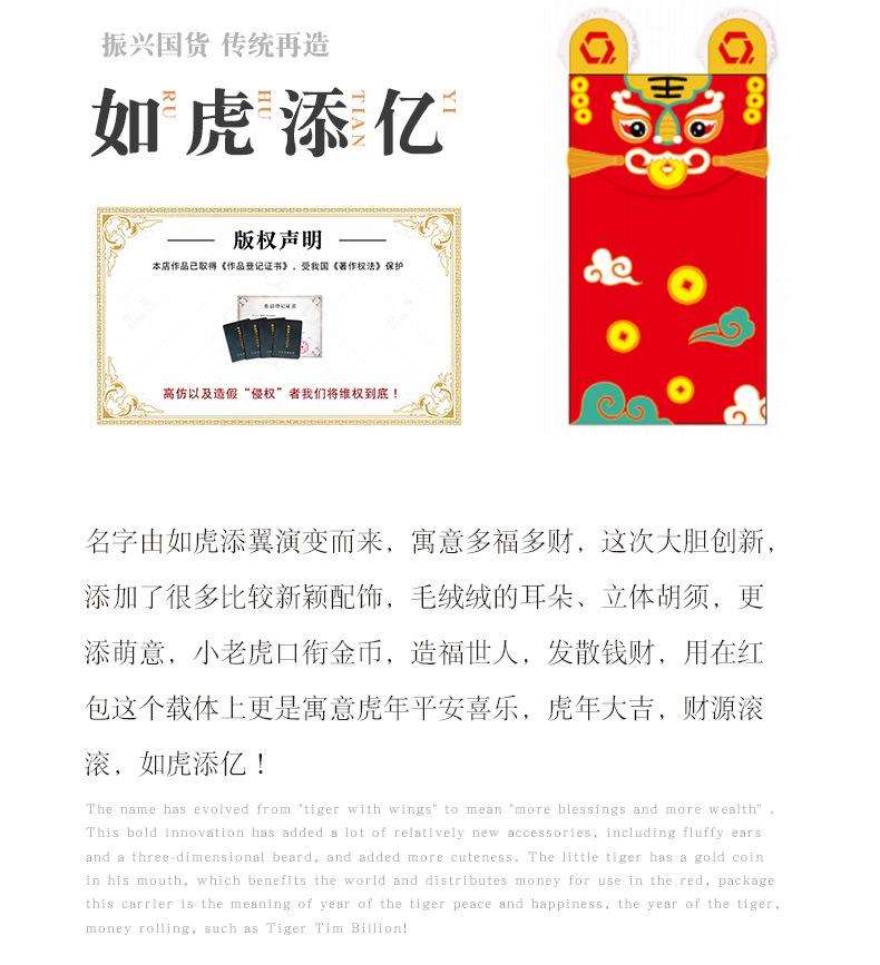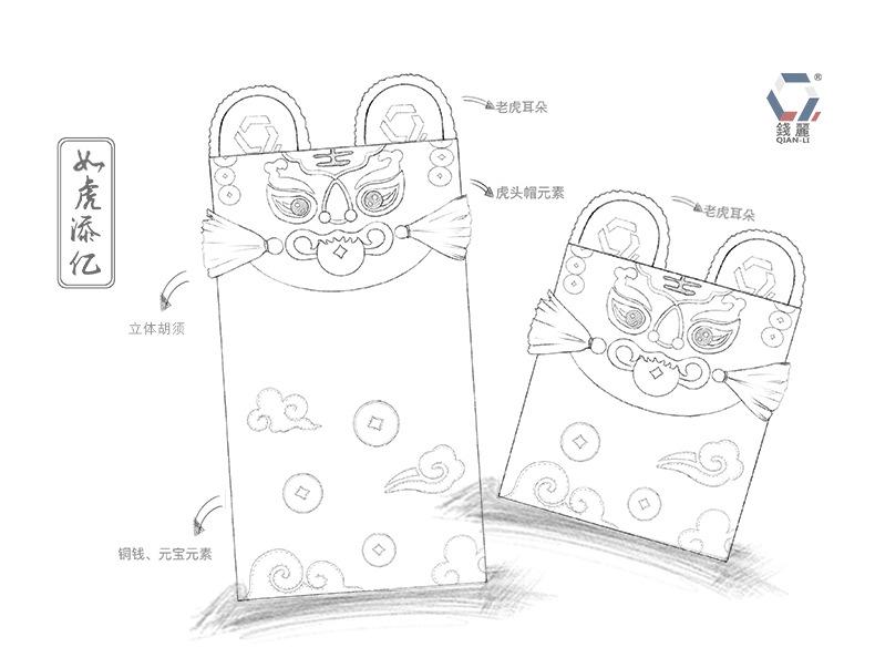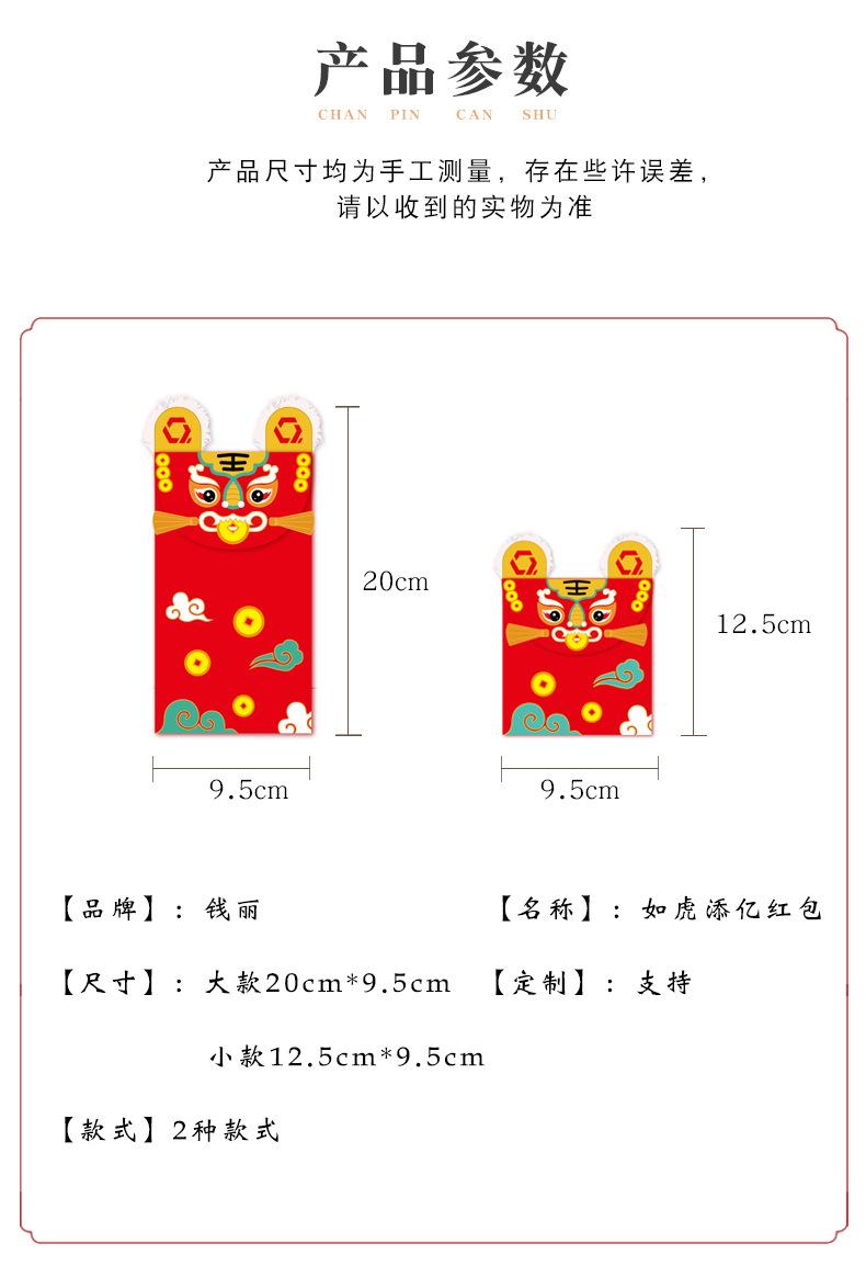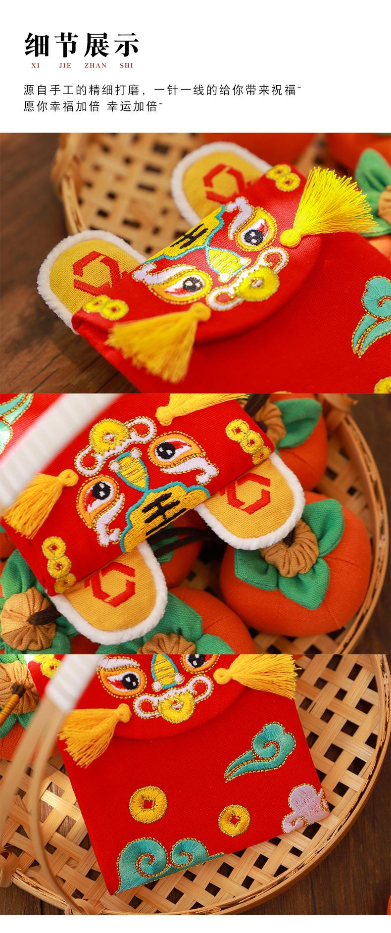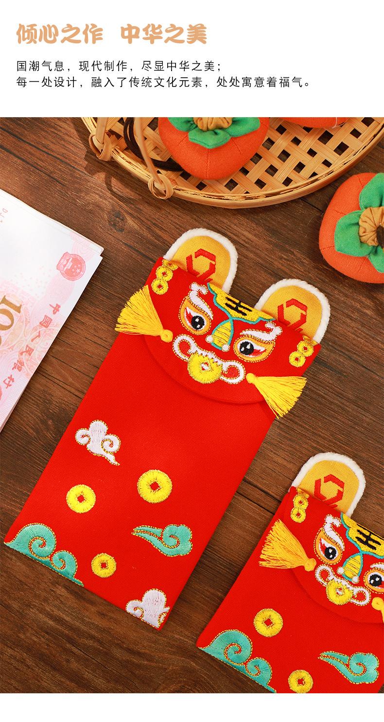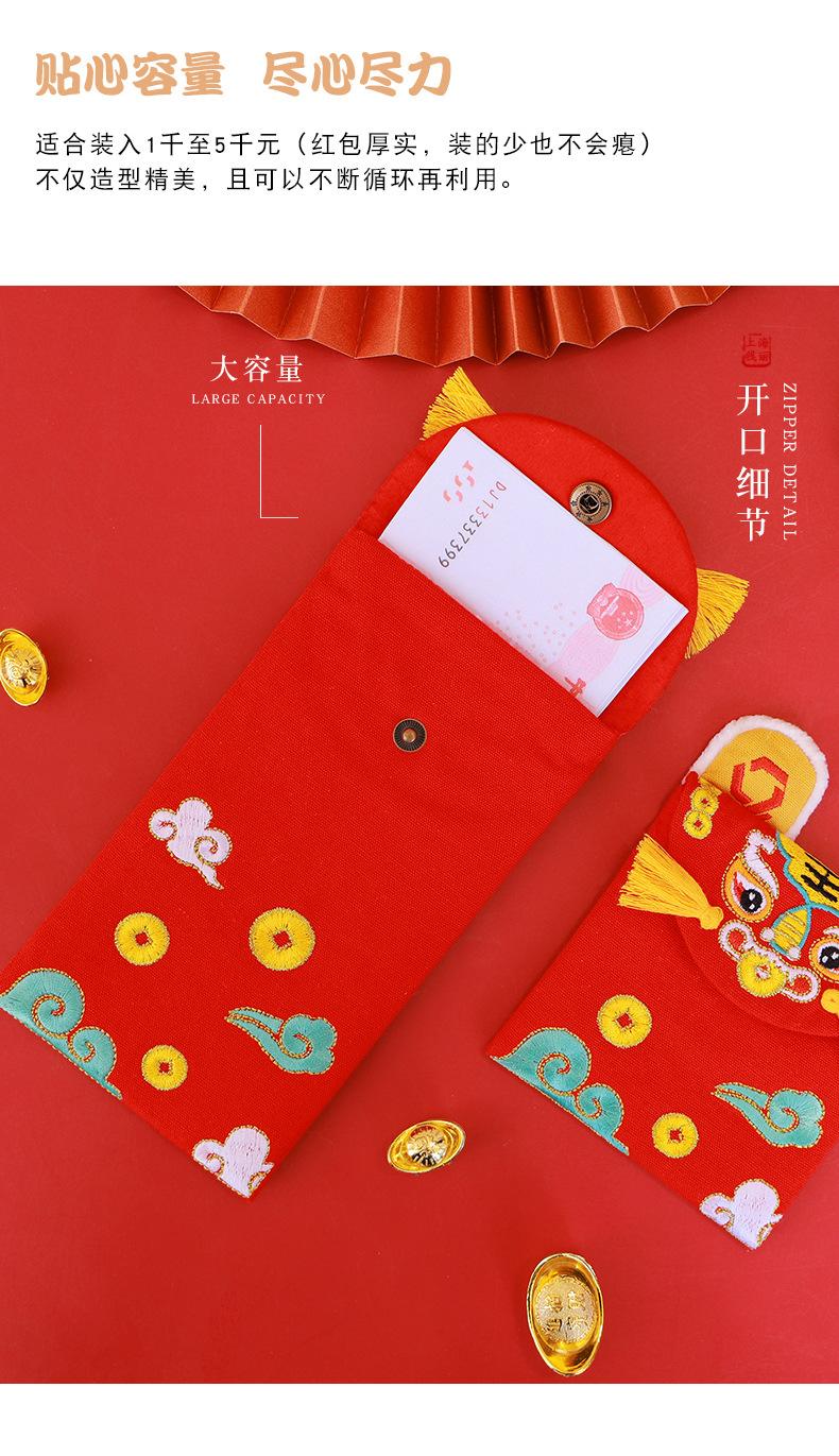 [Qian Li] Sobre rojo bordado de Año Nuevo con diseño creativo de tigre rojo, bolsa bordada con sello de beneficio de mil yuanes, venta al por mayor