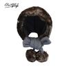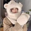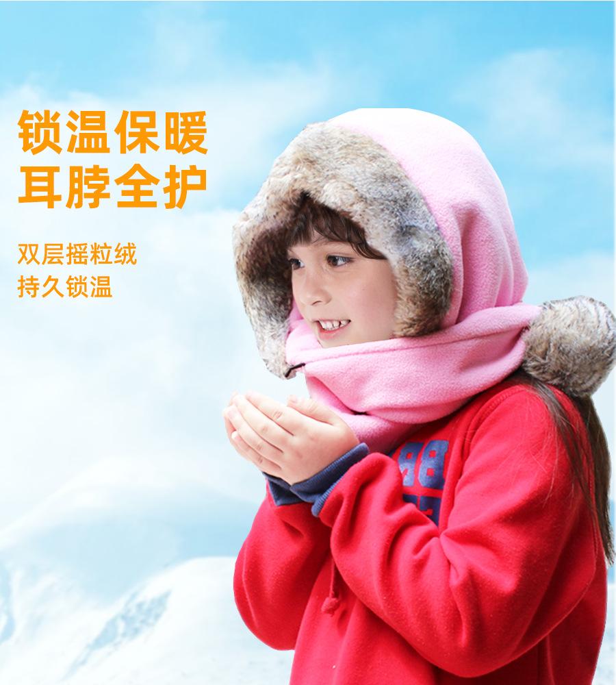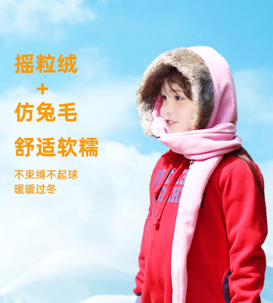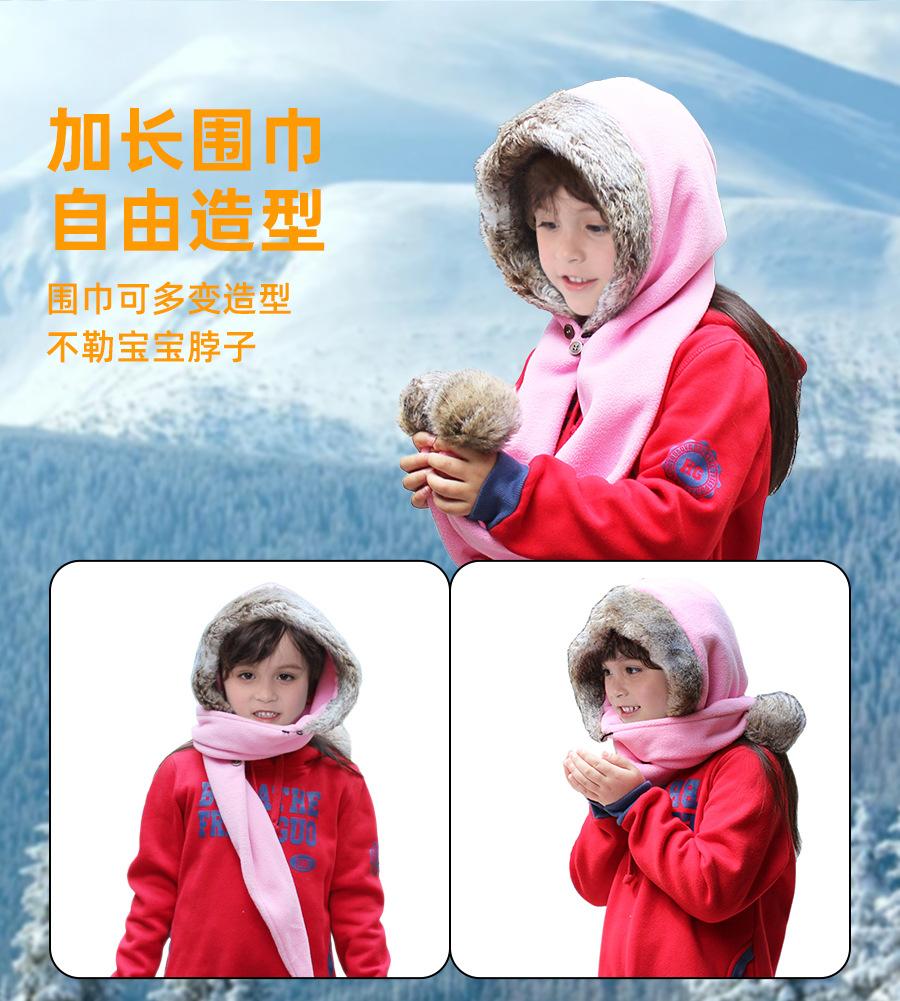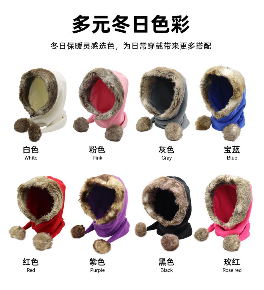 Bufanda Sombrero de Doble Bola para Niños Lana Polar Espesado Cálido Sombrero Bufanda Integrado Cuello de Piel Grande Sombrero de Invierno Caperucita Roja Personalización