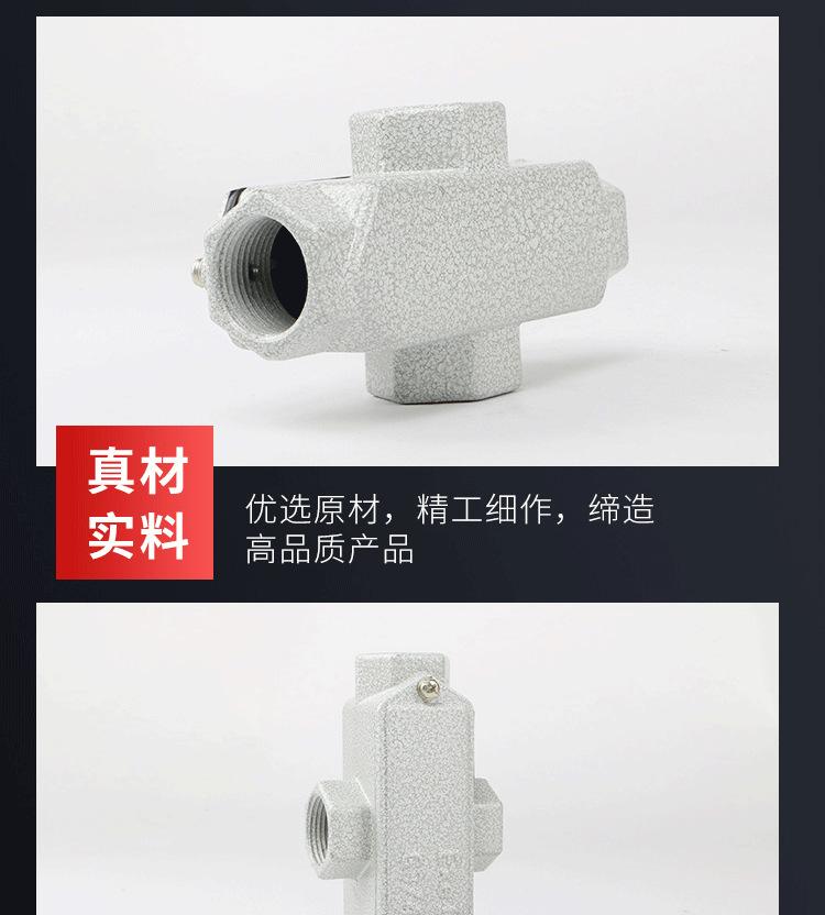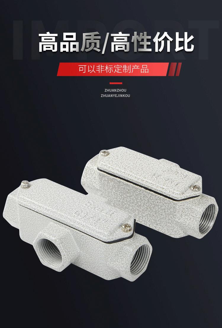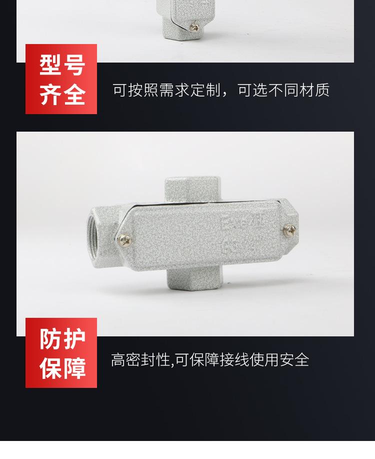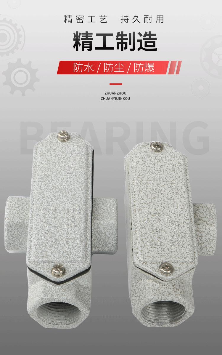Caja de roscado antideflagrante BHC, codo antideflagrante de aluminio fundido de 6 puntos, caja de alambre de tres pasos antideflagrante DN20, cuadrado recto antideflagrante