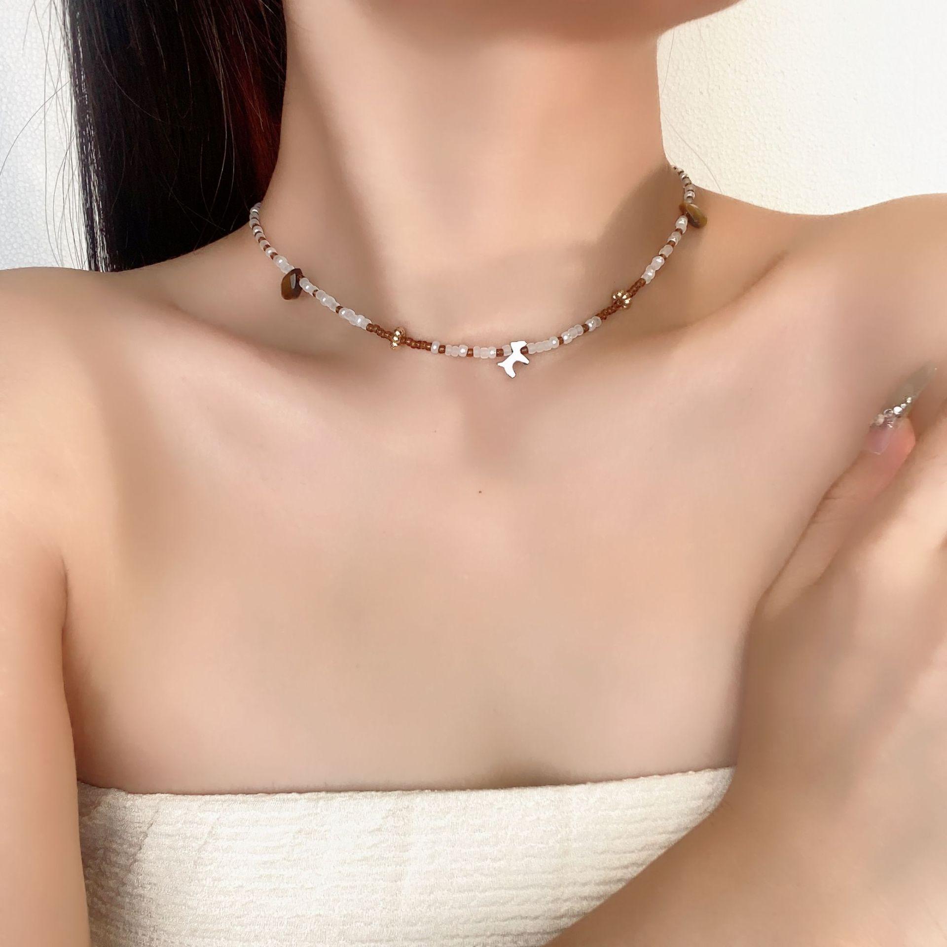Collar de cuentas de cristal de concha irregular para mujer, cadena de clavícula combinable con todo, elegante y de alta gama.
