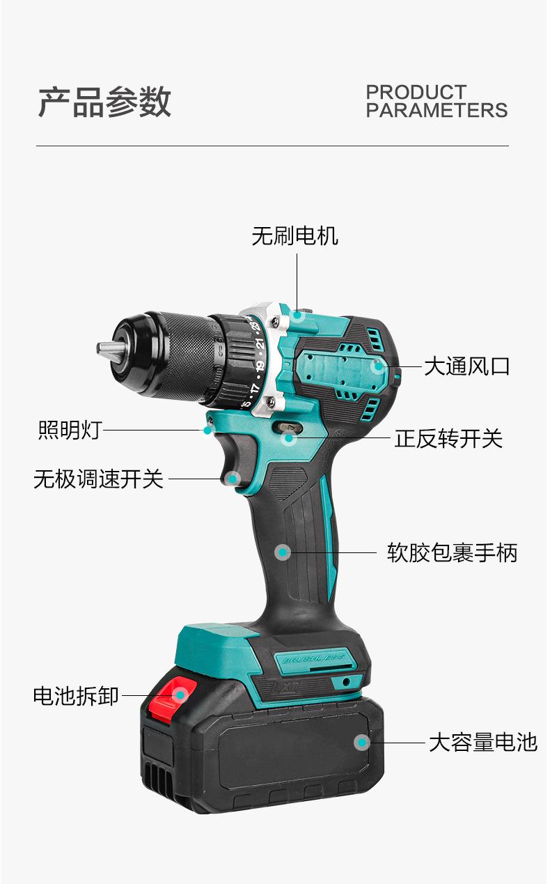 Taladro Eléctrico de Mano Herramienta Eléctrica Motor Sin Escobillas 21V Recargable Taladro Eléctrico Atornillador Litio Eléctrico Eléctrico Doméstico Taladro de Pistola
