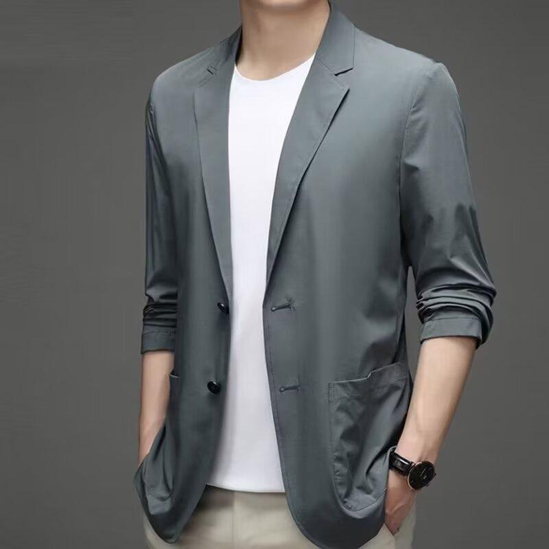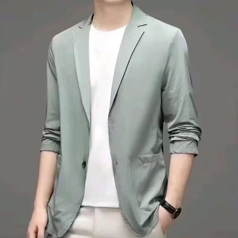 Traje de Verano para Hombre Delgado Casual Ropa de Protección Solar Traje Pequeño Ligero Traje de Primavera y Otoño Chaqueta Abrigo Moderno