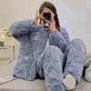 Europa y Estados Unidos otoño e invierno nuevo terciopelo de doble cara talla grande traje para gorditas puede usar pijama ropa de casa para mujer engrosada