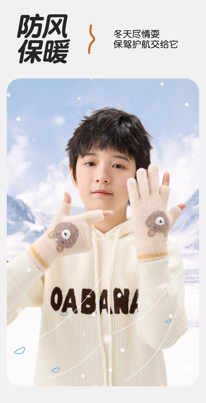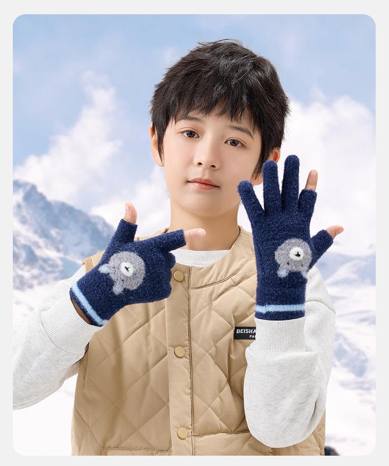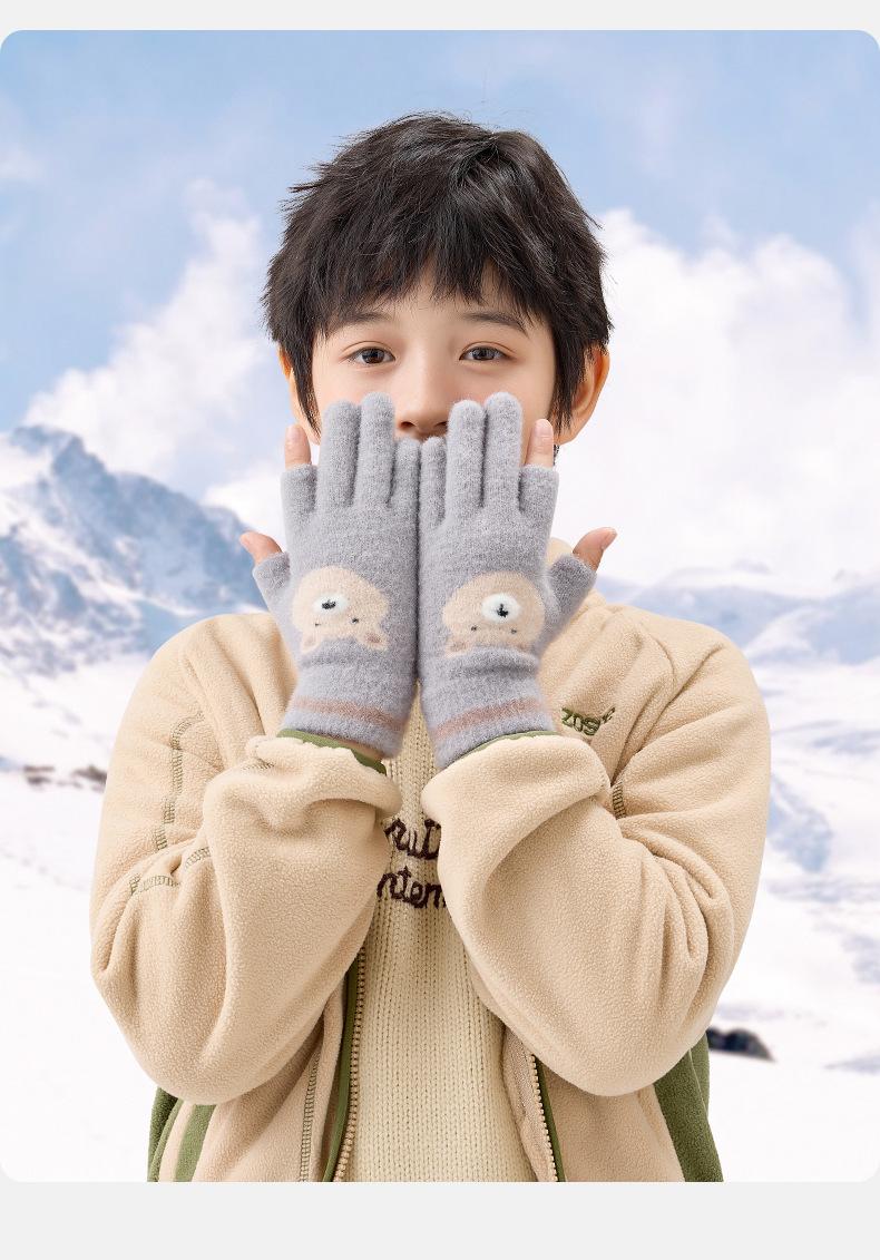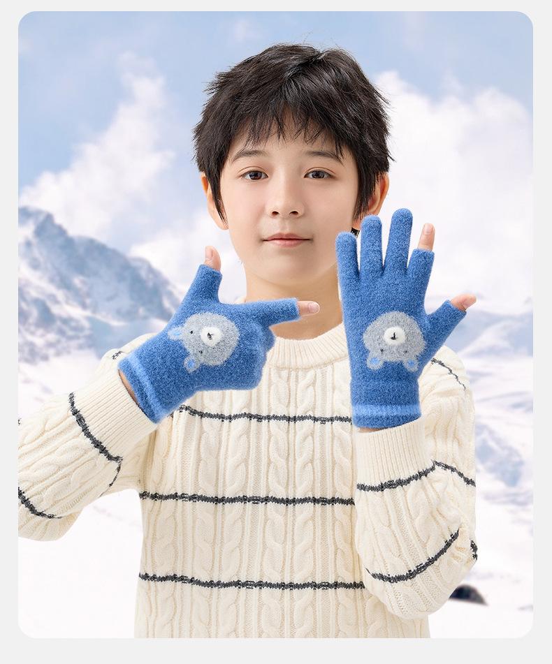 Guantes para Niños Cálidos de Medio Dedo Otoño e Invierno Escritura Dibujos Animados Tejidos Lindo Lana Guantes para Niños y Alumnos