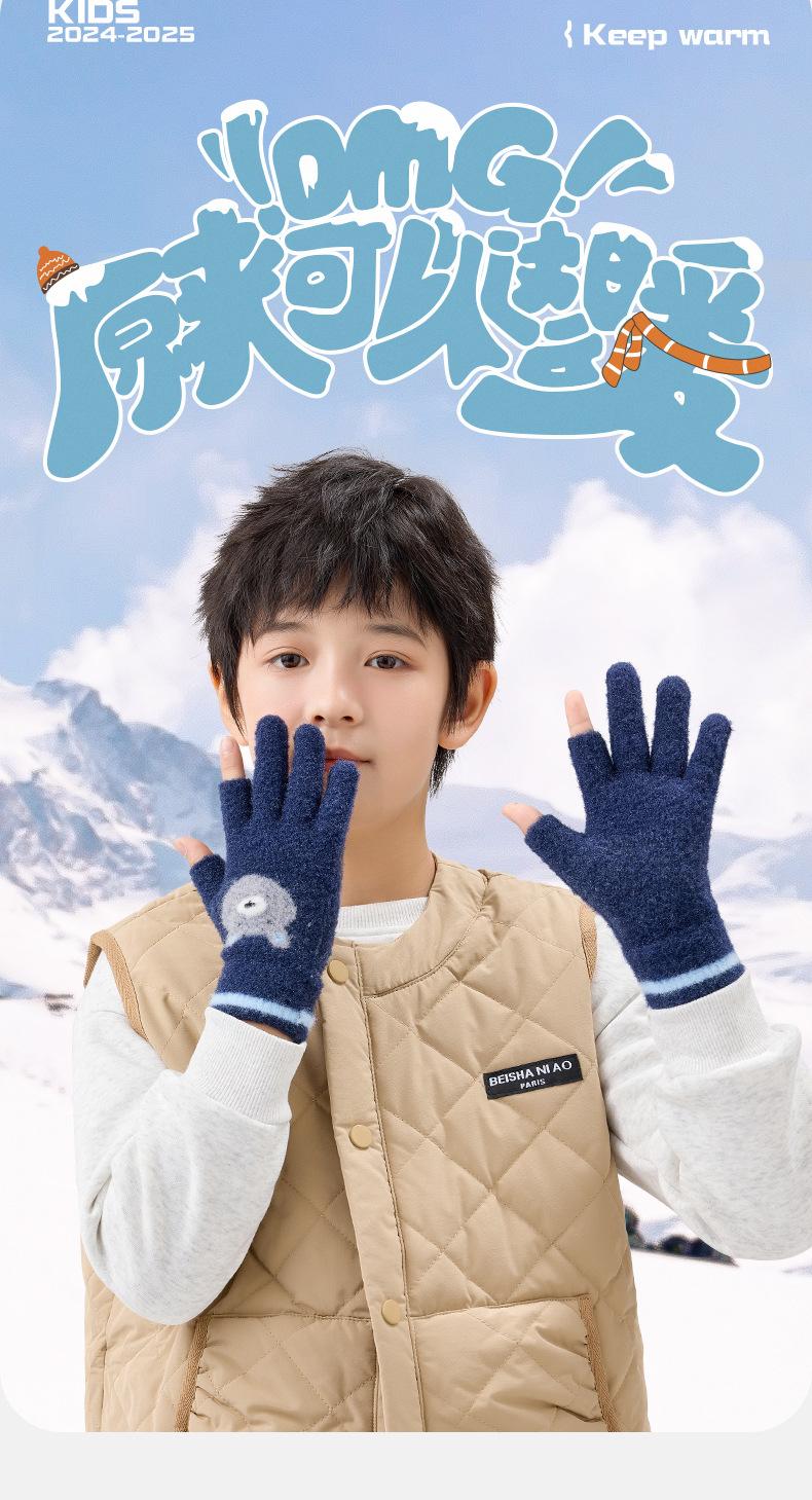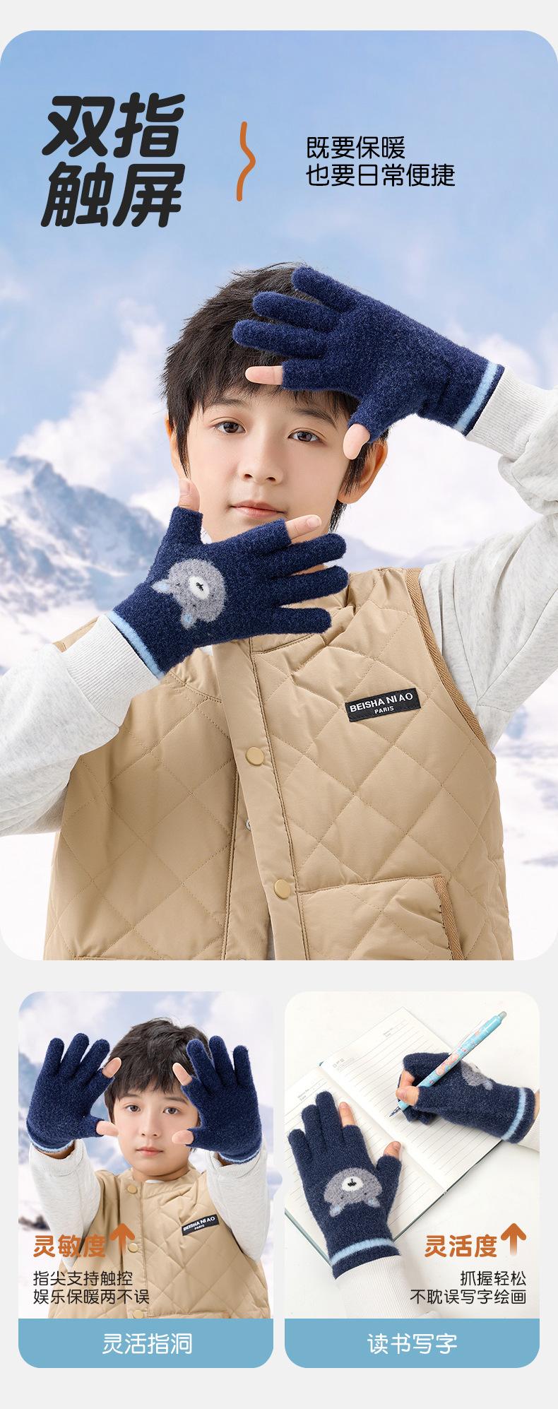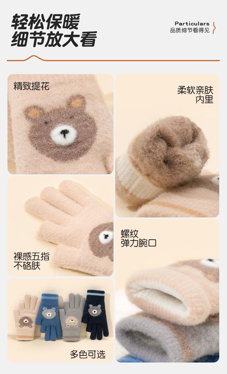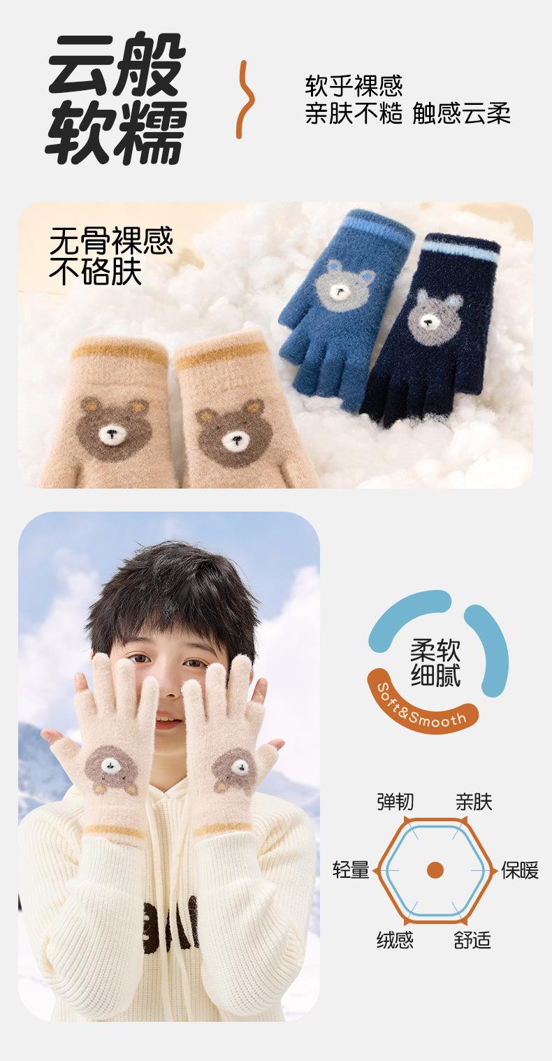Guantes para Niños Cálidos de Medio Dedo Otoño e Invierno Escritura Dibujos Animados Tejidos Lindo Lana Guantes para Niños y Alumnos