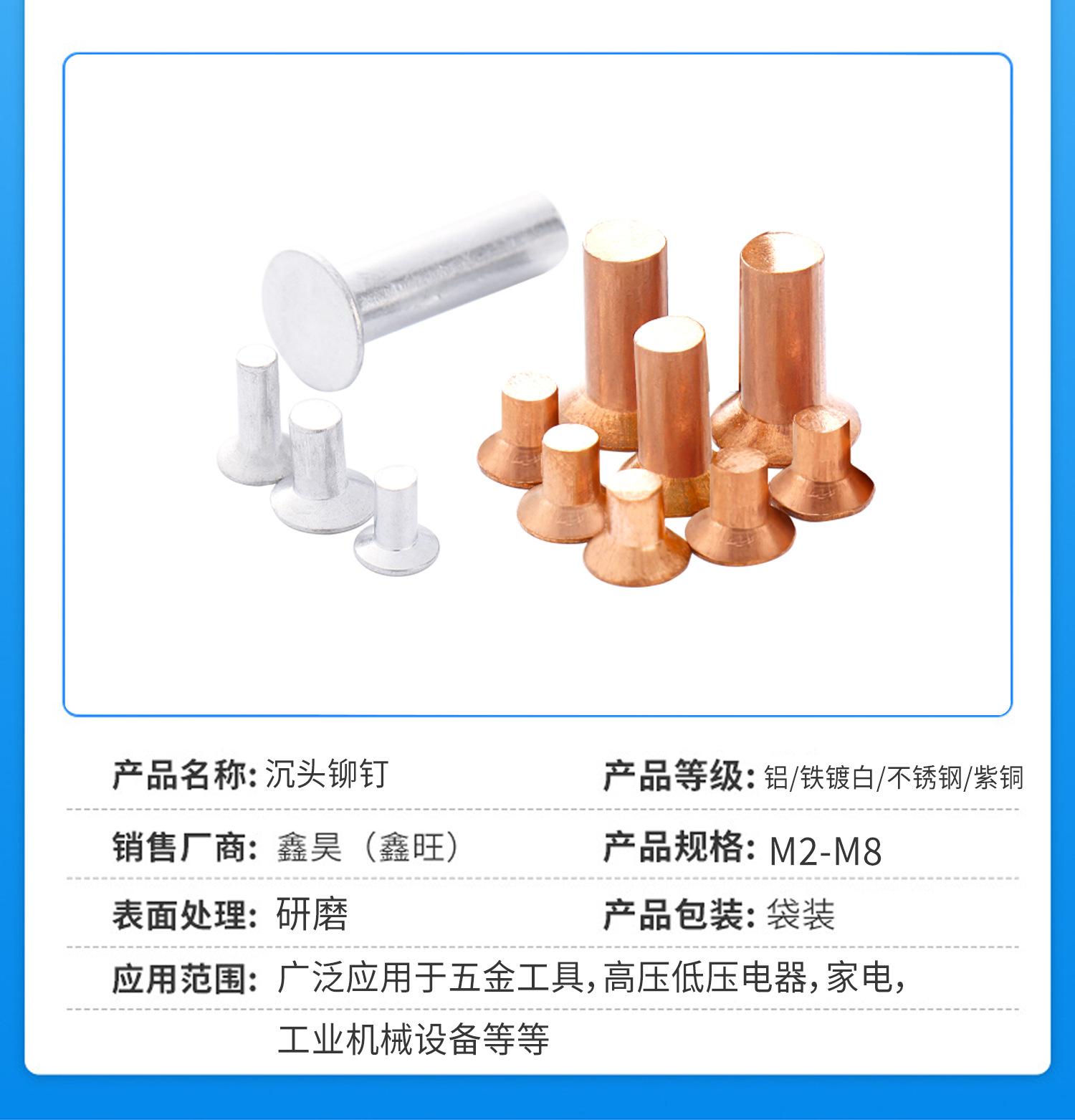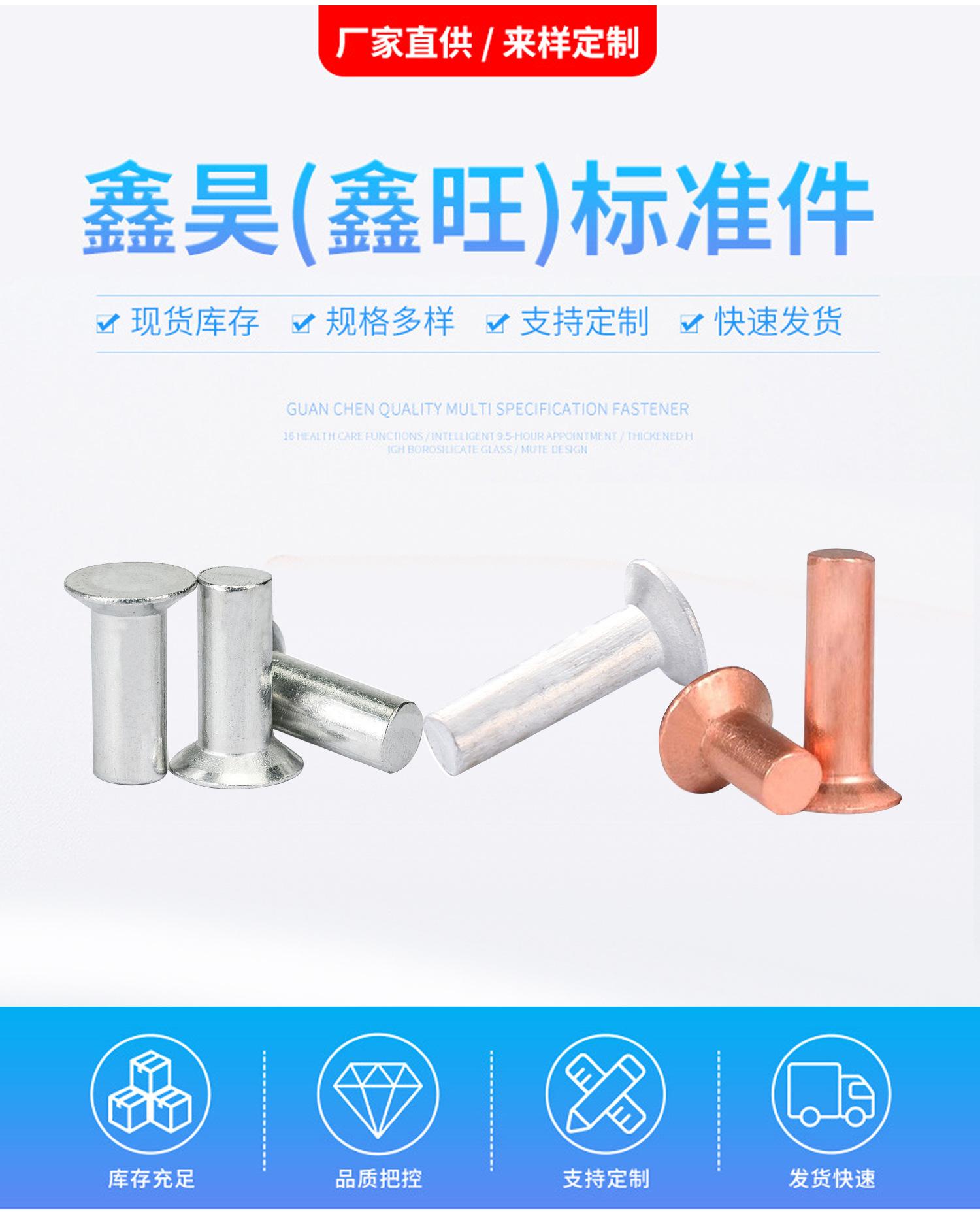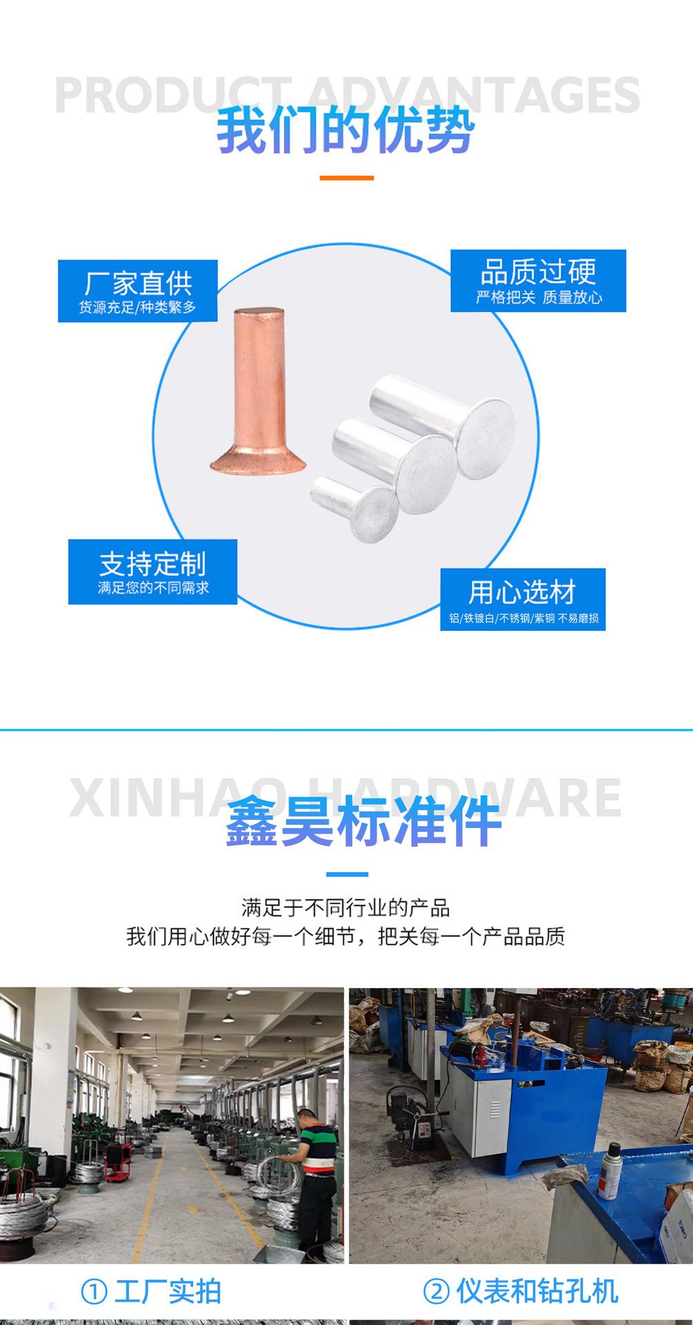 Remache Sólido de Cabeza Avellanada Material Aluminio Hierro Cobre Acero Inoxidable Clavo para Placa de Identificación Cónico Plano Gb869 Fabricante Personalizado No Estándar Venta al por Mayor