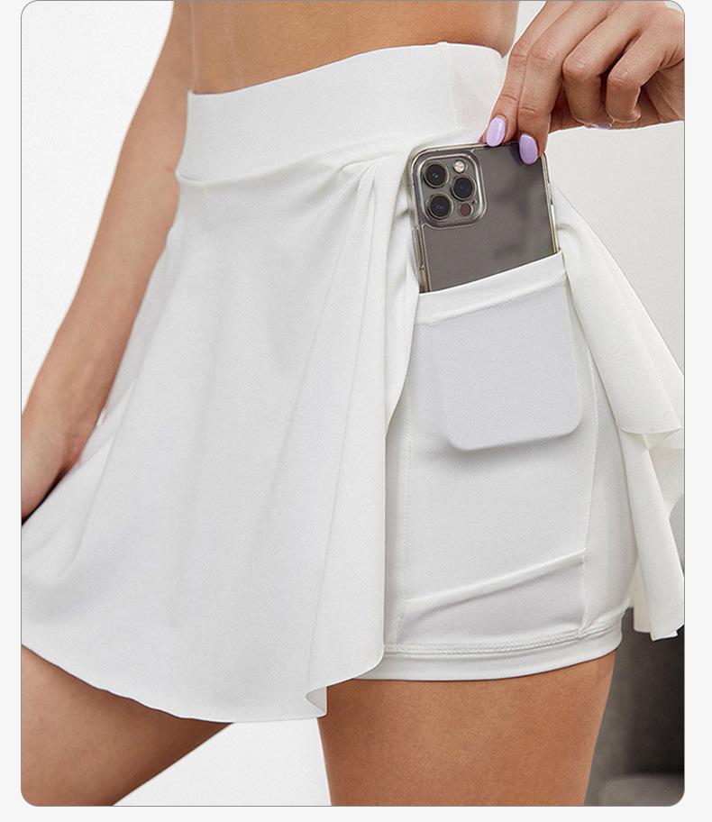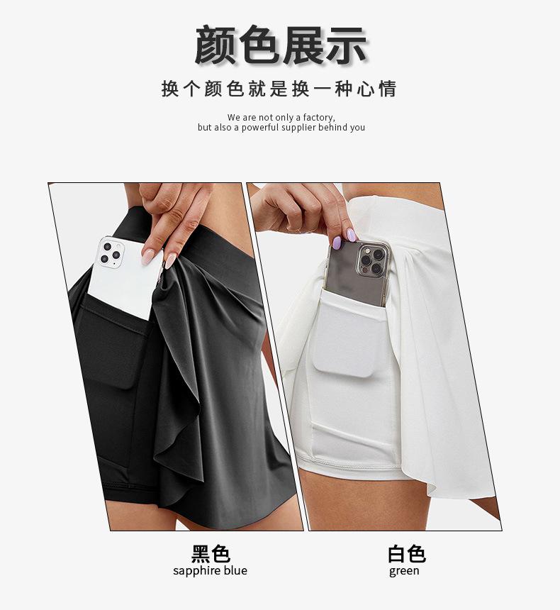 Traje de yoga de dos piezas personalizado, nuevo, falso, transfronterizo, falda corta deportiva, para correr, fitness, tenis, falda deportiva básica para mujer