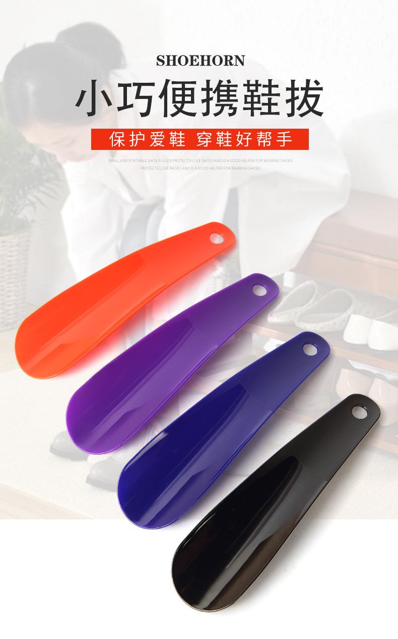 En stock, venta al por mayor, calzador pequeño de plástico, dispositivo de extracción de zapatos, calzador portátil de viaje para el hogar, uso diario, puede hacer marca registrada.