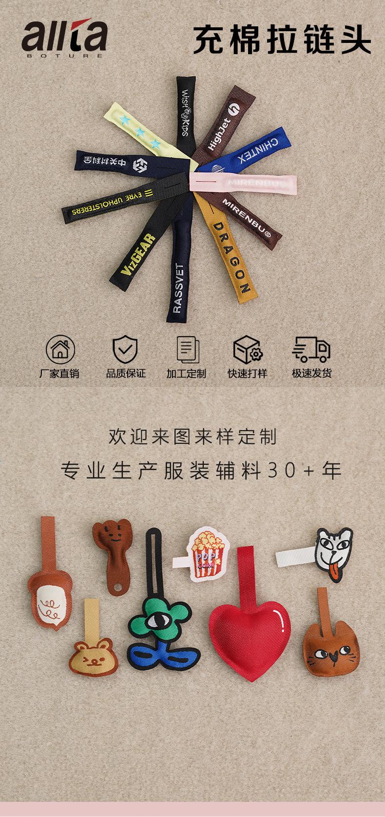Jalador de Cremallera de Etiqueta Tejida Rellena de Algodón Personalizada Chaqueta Simple Chaqueta de Plumas Jalador de Poliéster de Alta Densidad de Doble Capa Estéreo de Alta Calidad