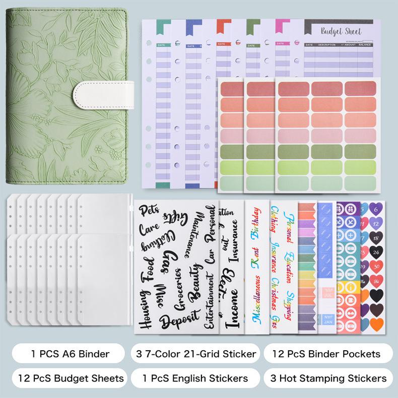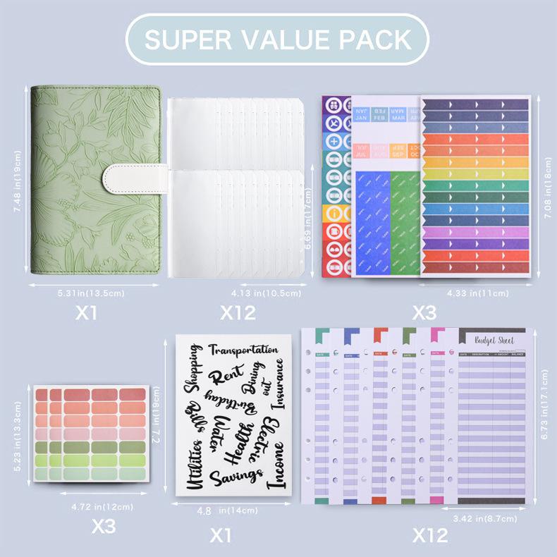-embossed black (12 budget cards + 8 zipper bags + 2 word stickers + 3 multi-function stickers + 1 caliper + 2 color labels