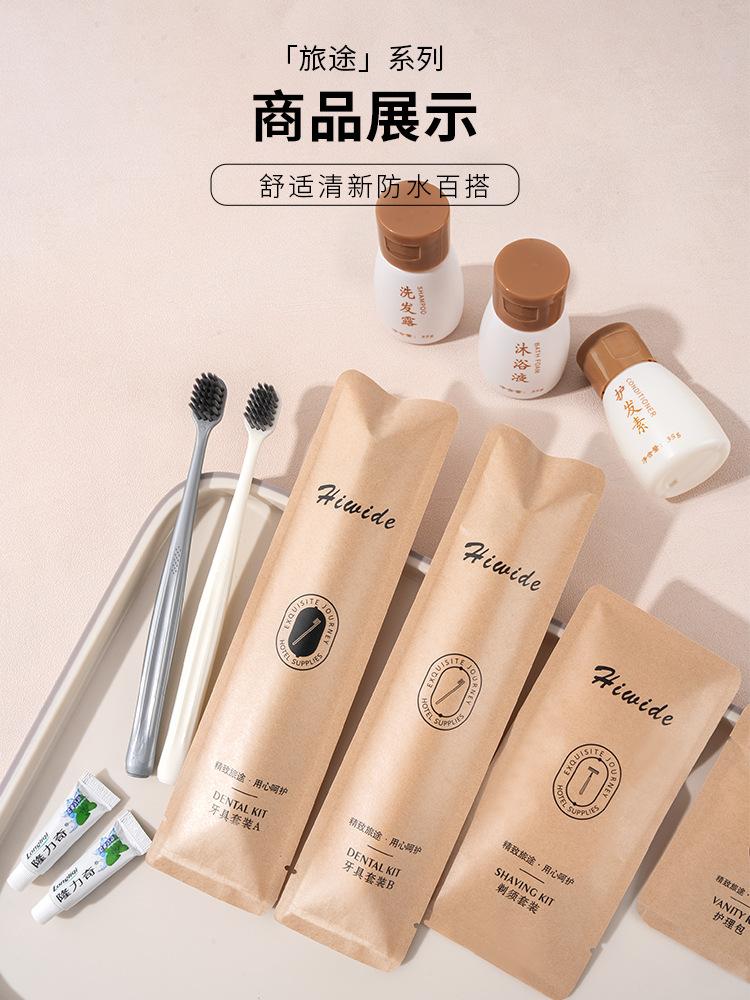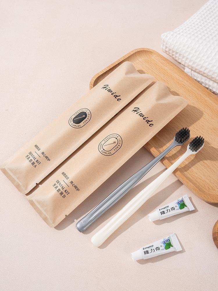 Cepillo de dientes desechable para alojamiento familiar con pasta de dientes, papel Kraft impermeable, artículos de tocador para hotel y hogar.