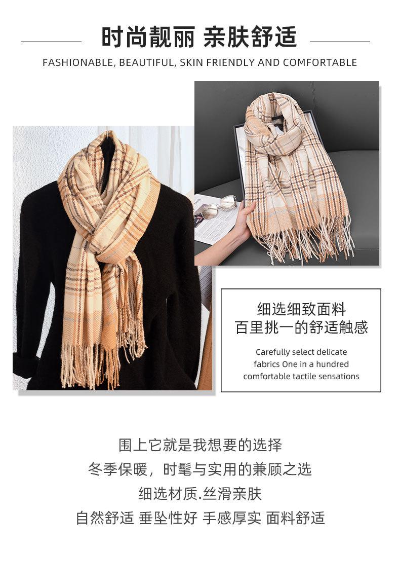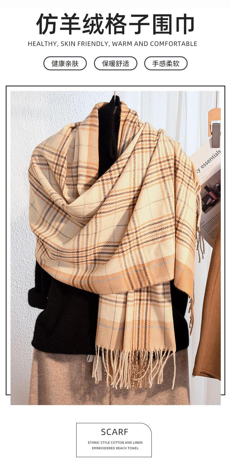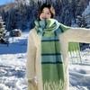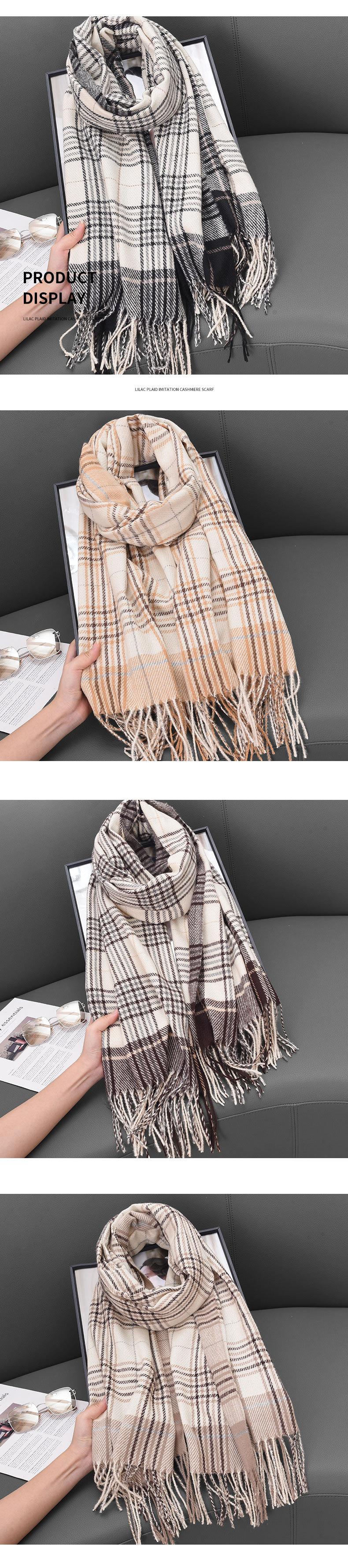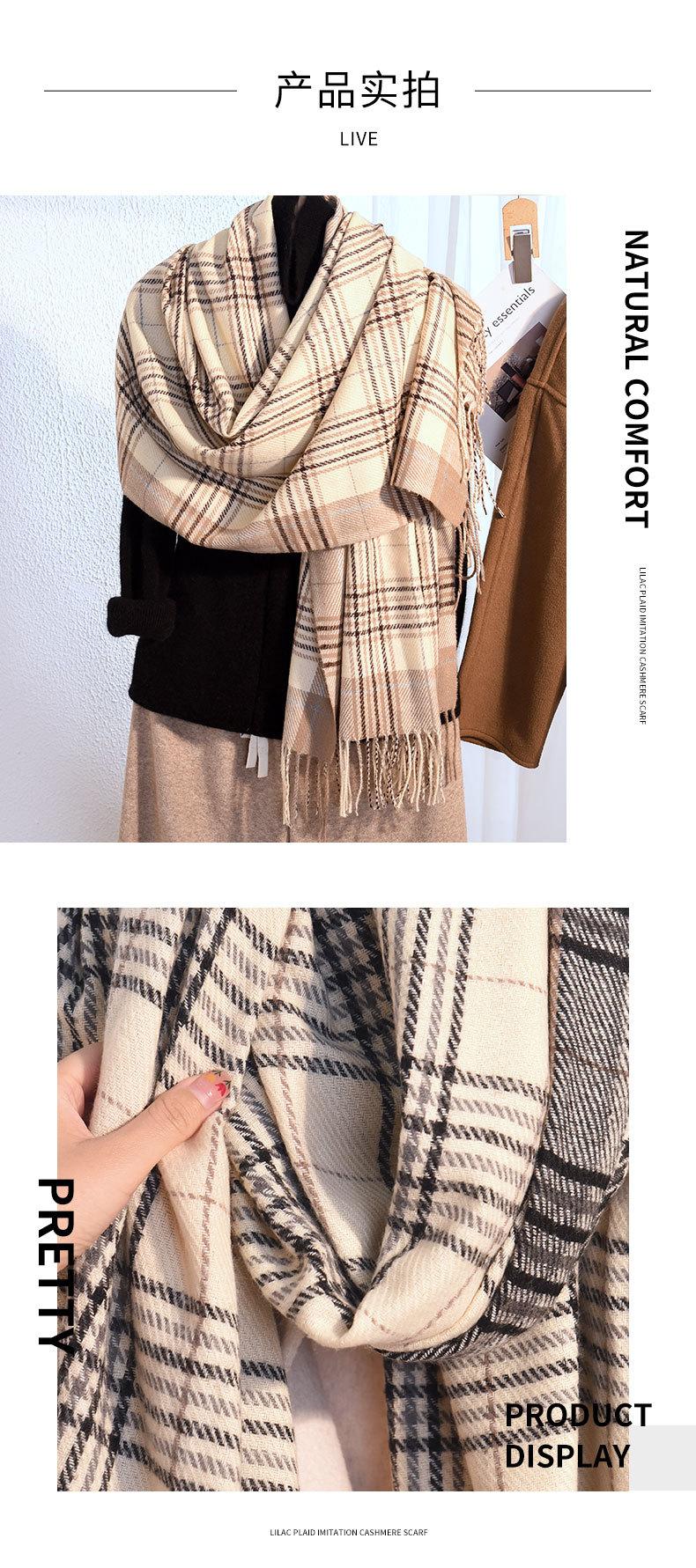 Bufanda a cuadros de cachemir de estilo coreano para mujer, chal cálido de invierno, doble uso, suave, estilo retro, para estudiantes, 2024