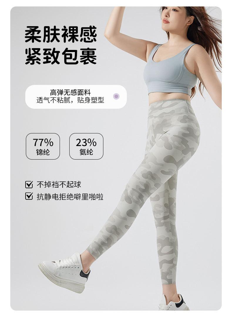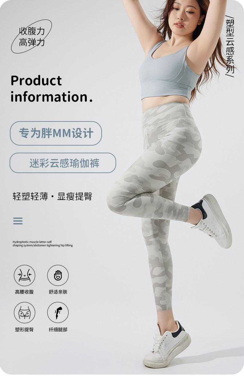 Pantalones de Yoga Camuflaje Talla Grande Verano Delgados para Mujer Ropa Exterior Cortos Gordos mm No Se Caen Ajustados Nueve Puntos Pantalones de Ciclismo