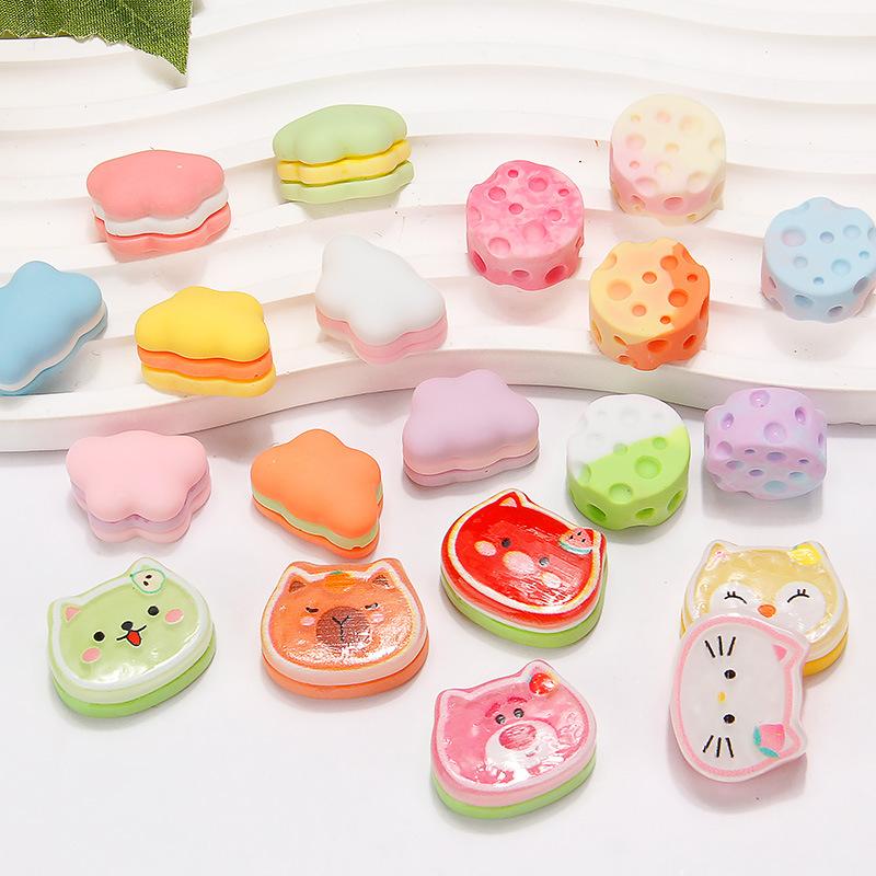 Accesorios de Resina Tridimensional Color Macaron Hecho a Mano DIY Pegamento Crema Dibujos Animados Pasador para el Cabello Joyería Agujero Hebilla para Zapato Sizzy Cheese