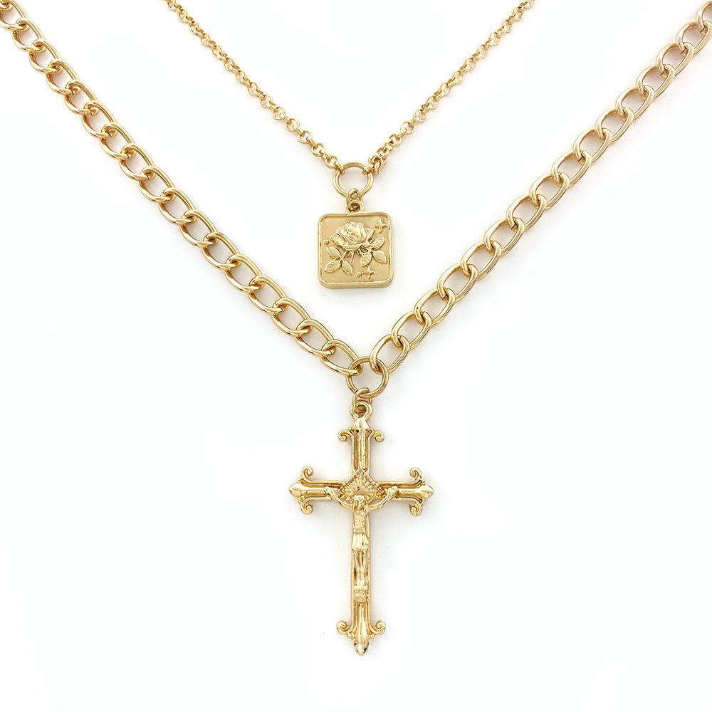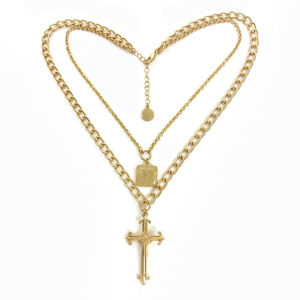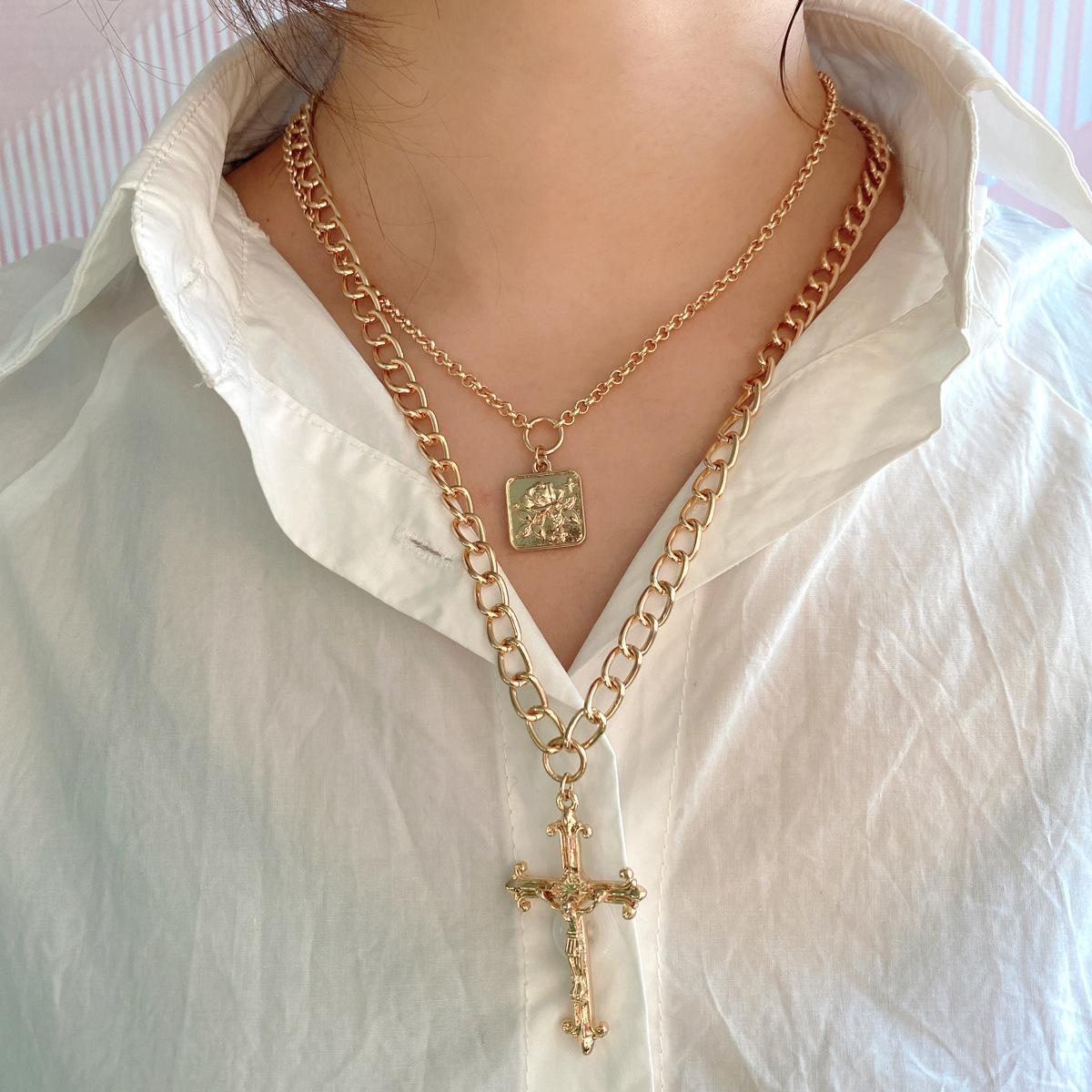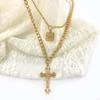 Collar con colgante de cruz de doble capa, estilo retro francés, estilo hip-hop, con letras personalizadas, estilo europeo y americano.