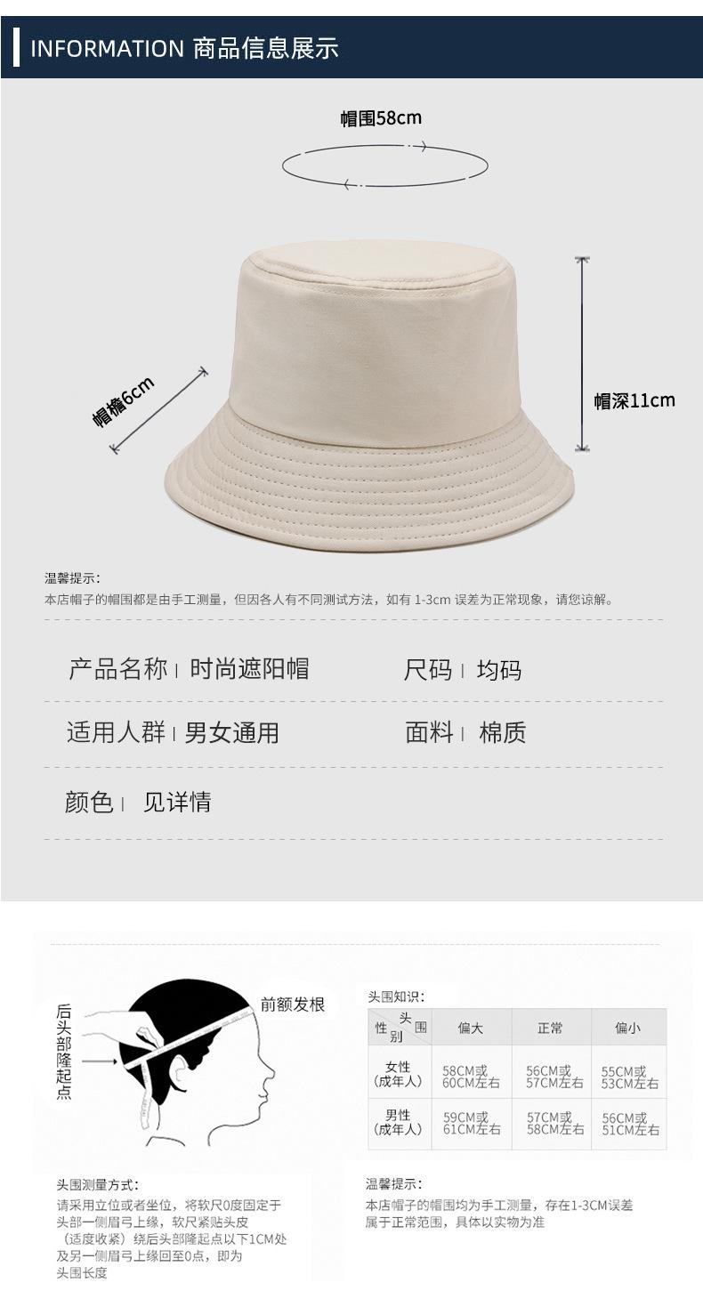 [Sombrero de Pescador Personalizado] Sombrero de Sol Moderno Sombrero de Cubeta de Primavera y Otoño Sombrero Casual Anti-UV Sombrero de Cubeta Sombrero de Algodón Puro