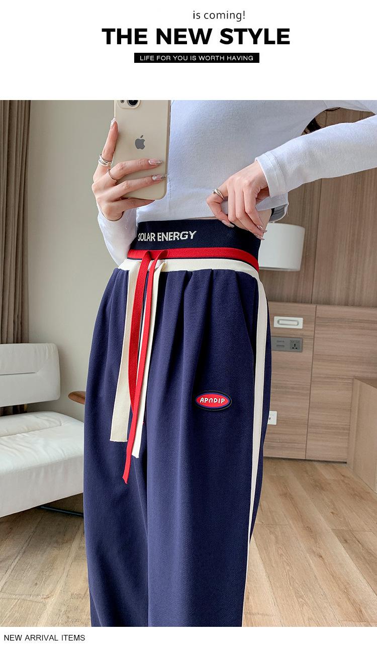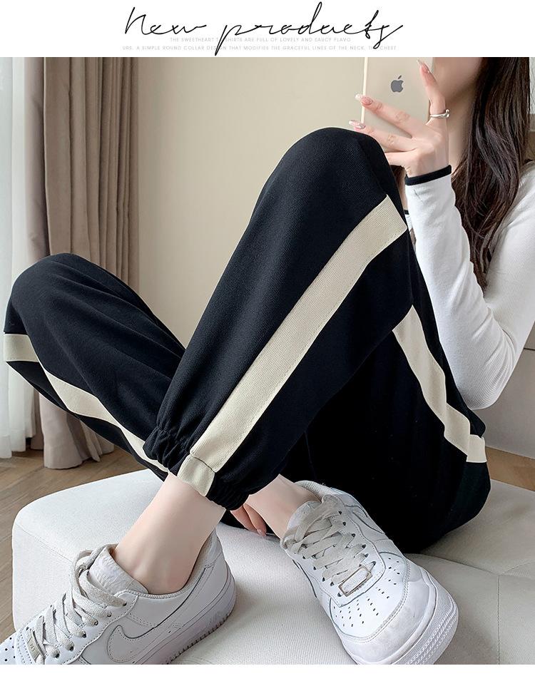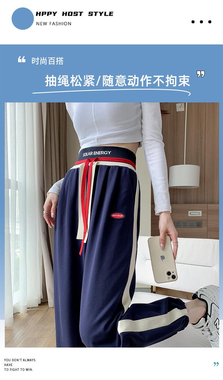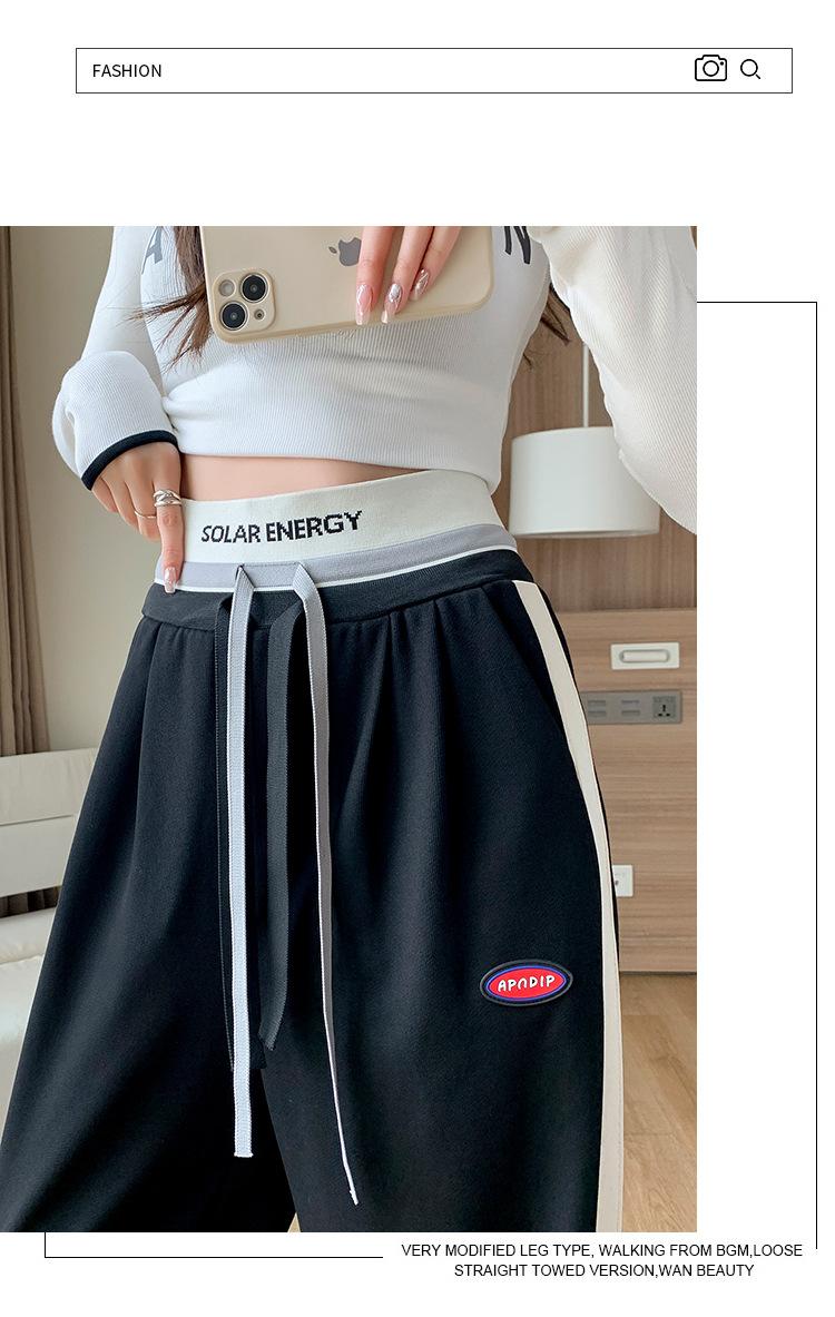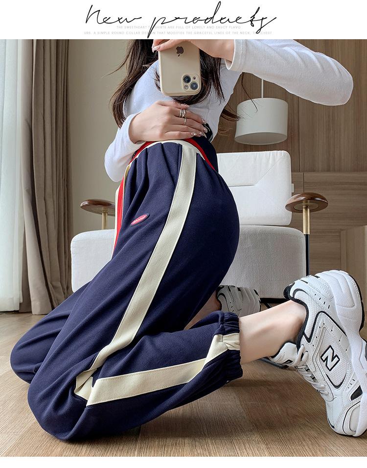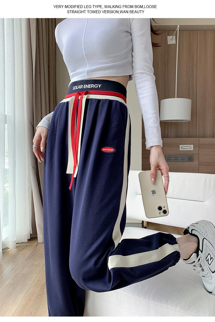 Pantalones deportivos de cintura alta con bloques de color para mujer 2023 Otoño Nuevo Holgados y versátiles Leggings con rayas laterales Pantalones deportivos casuales y versátiles
