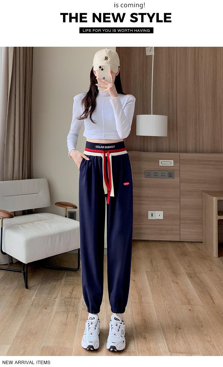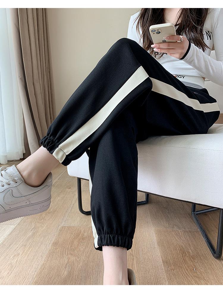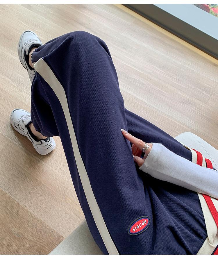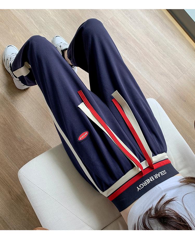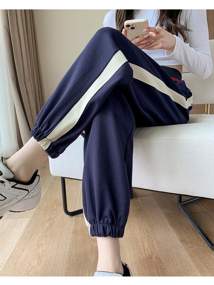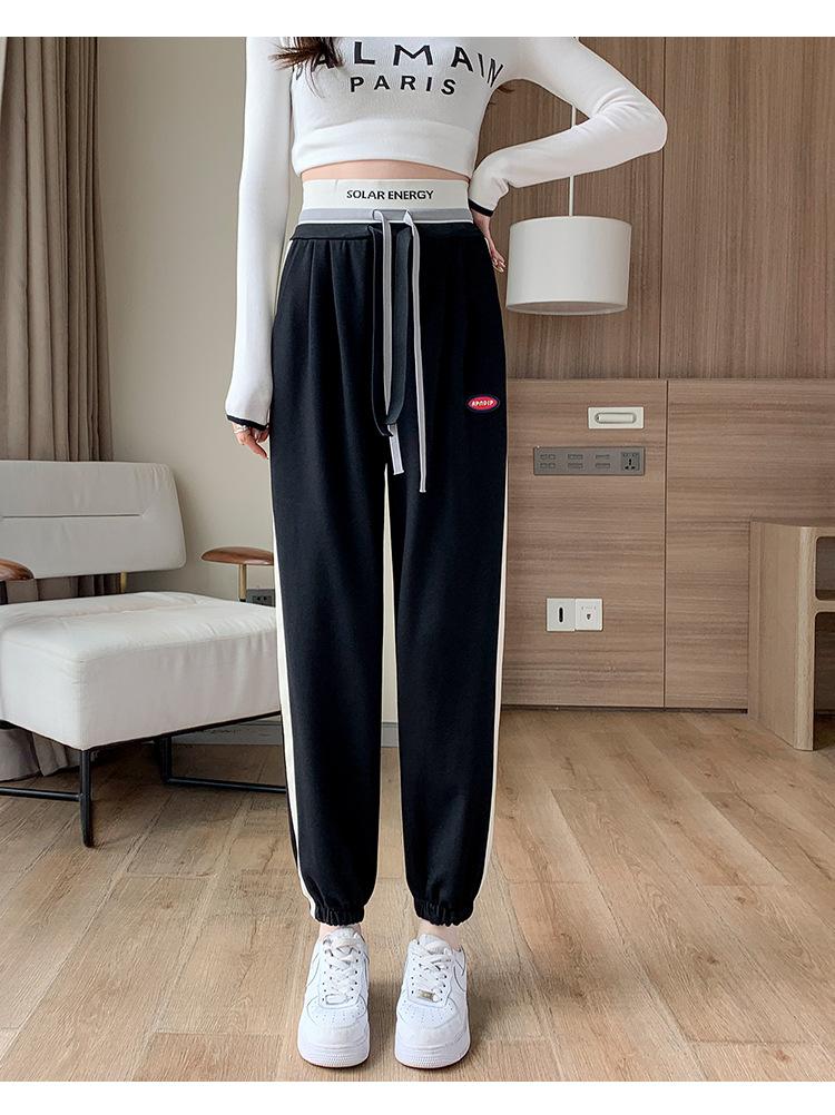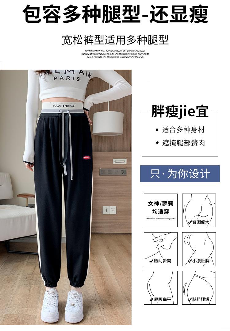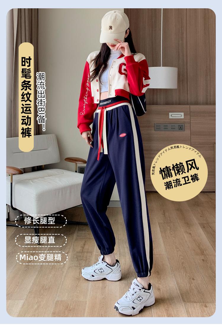Pantalones deportivos de cintura alta con bloques de color para mujer 2023 Otoño Nuevo Holgados y versátiles Leggings con rayas laterales Pantalones deportivos casuales y versátiles