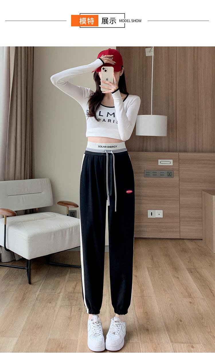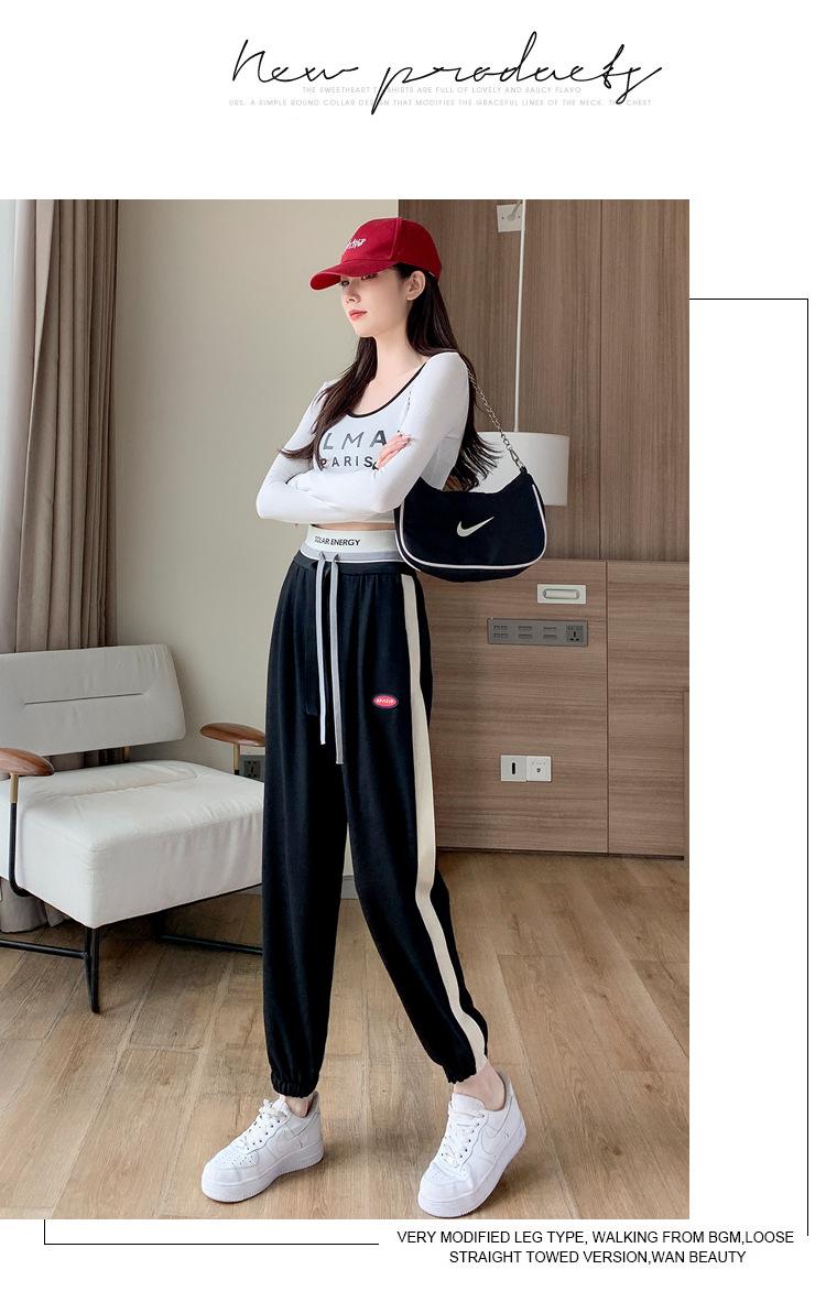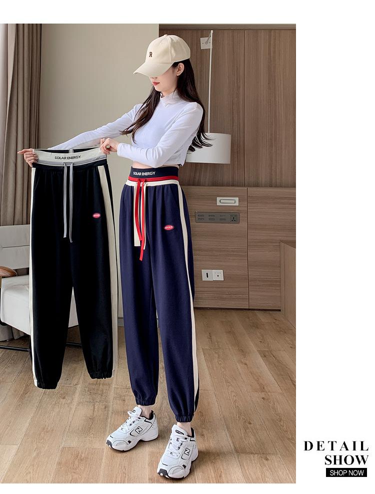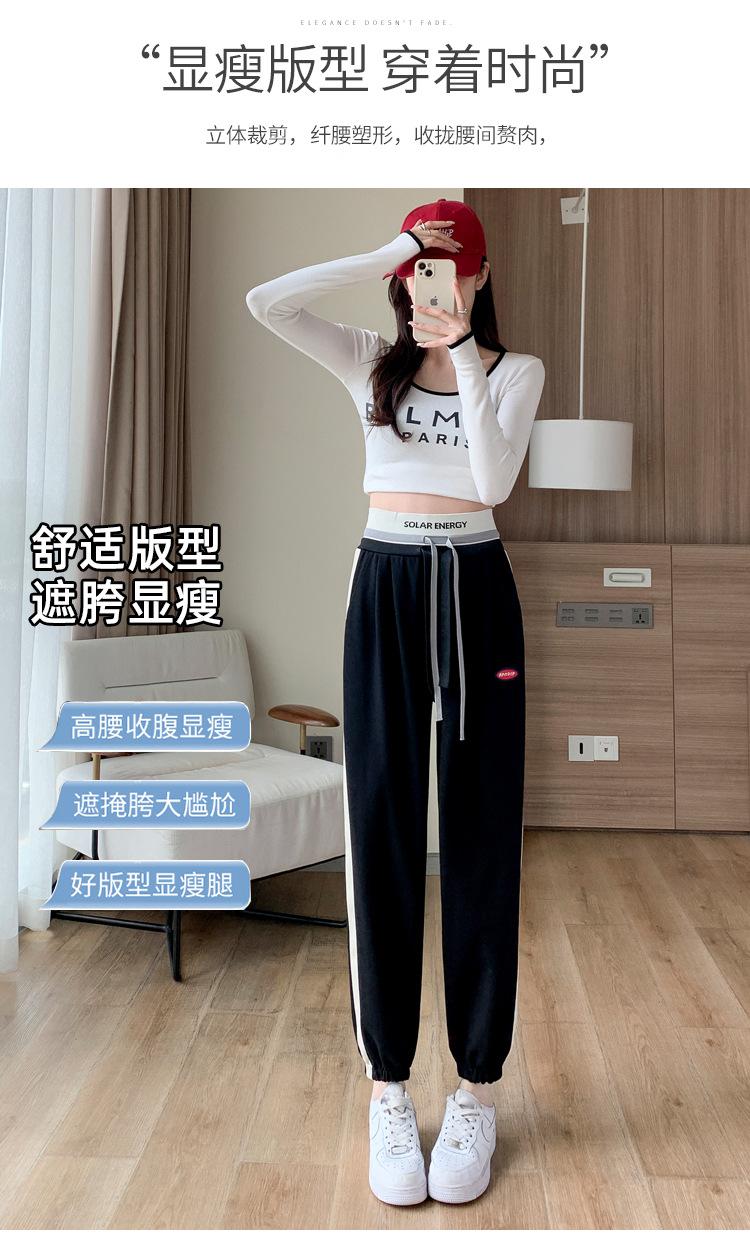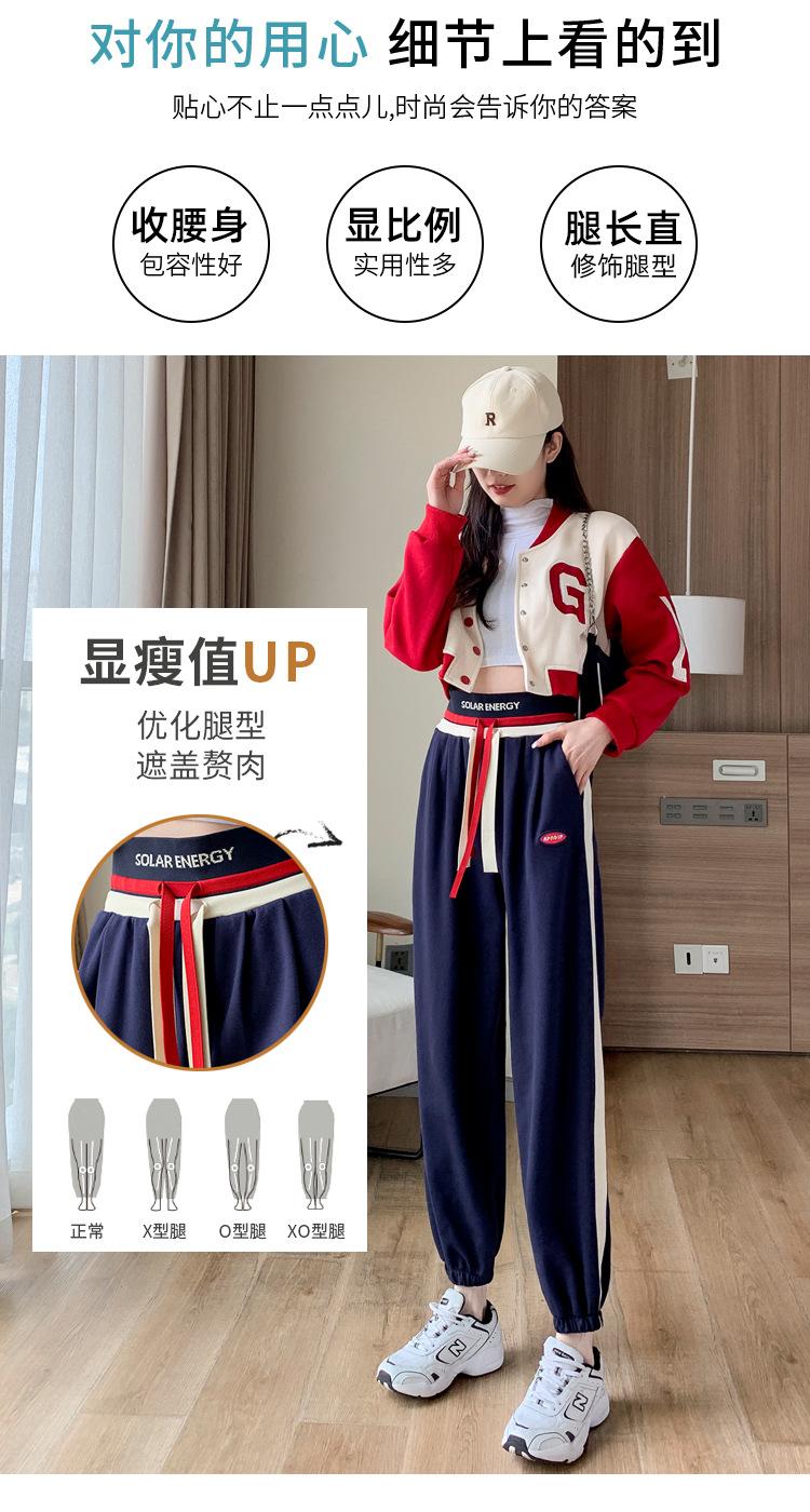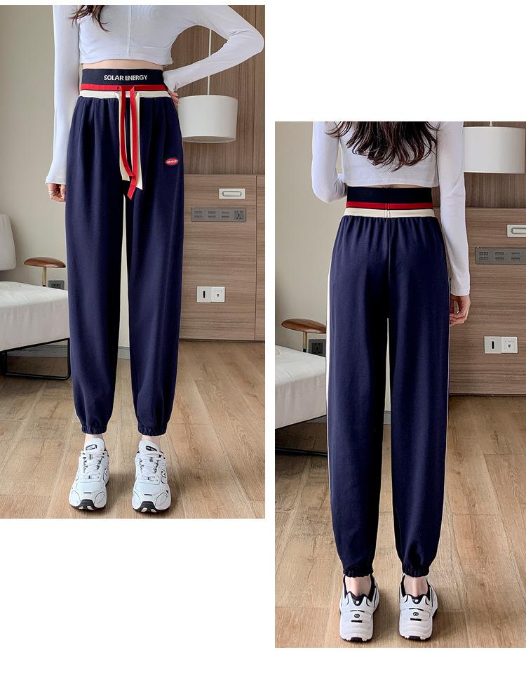 Pantalones deportivos de cintura alta con bloques de color para mujer 2023 Otoño Nuevo Holgados y versátiles Leggings con rayas laterales Pantalones deportivos casuales y versátiles