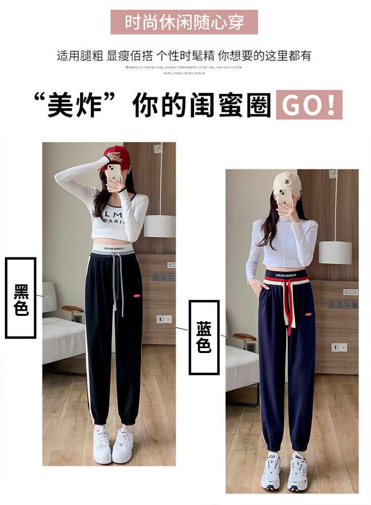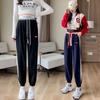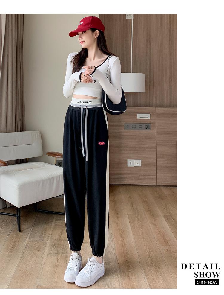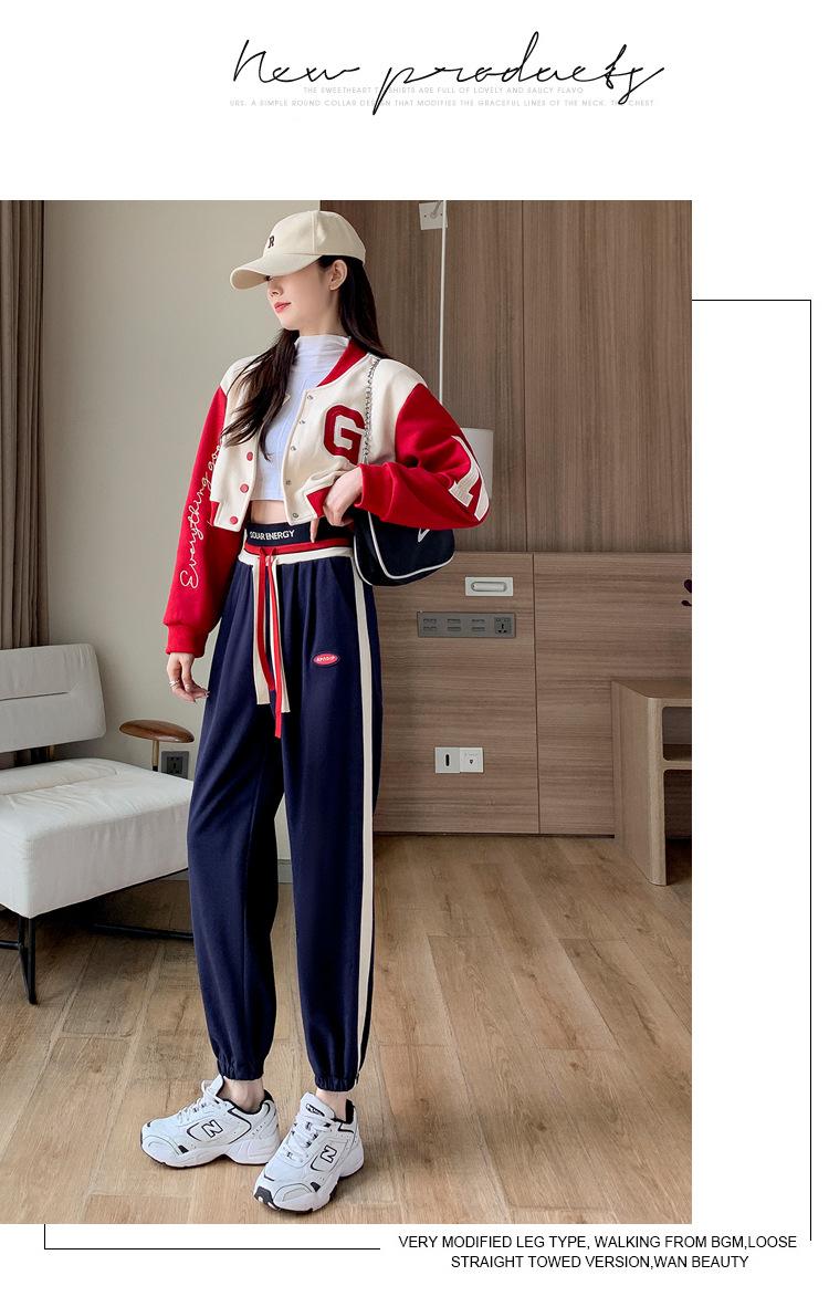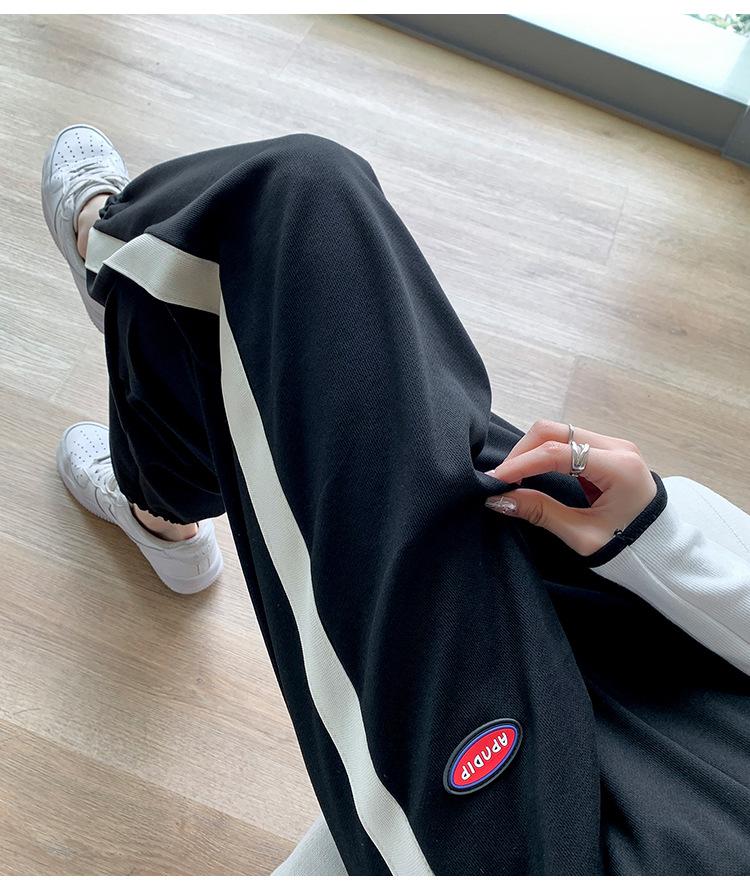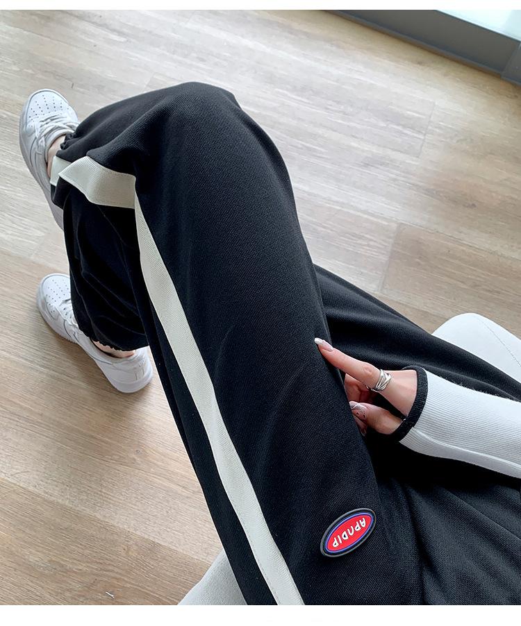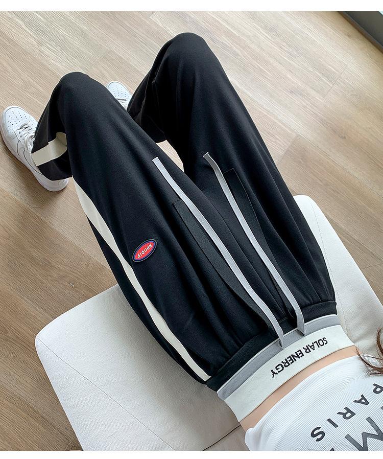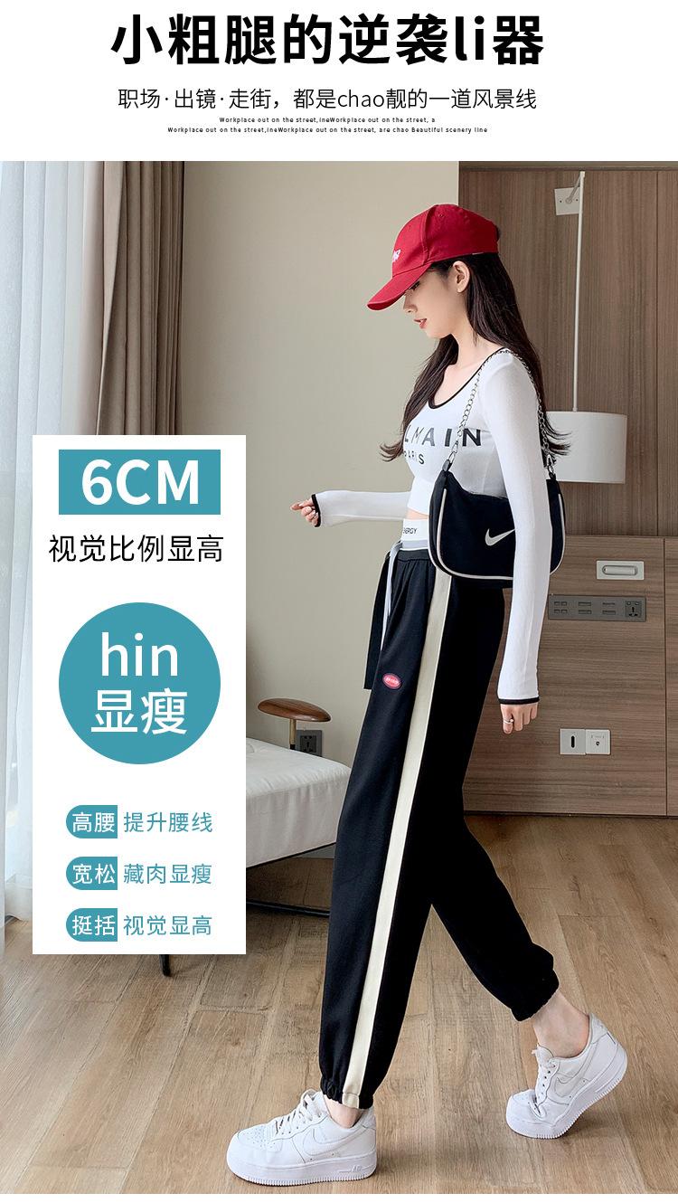 Pantalones deportivos de cintura alta con bloques de color para mujer 2023 Otoño Nuevo Holgados y versátiles Leggings con rayas laterales Pantalones deportivos casuales y versátiles