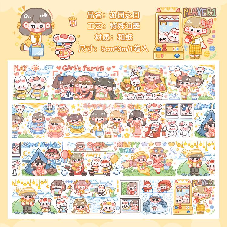 [Personalización de procesamiento por lotes pequeños] Cinta linda y creativa para cuenta de mano de red, material de decoración de dibujos animados, pegamento oem