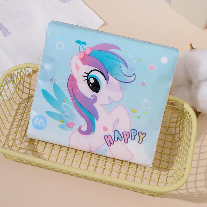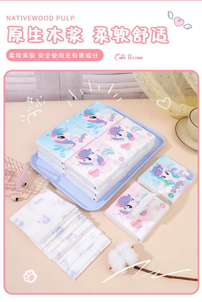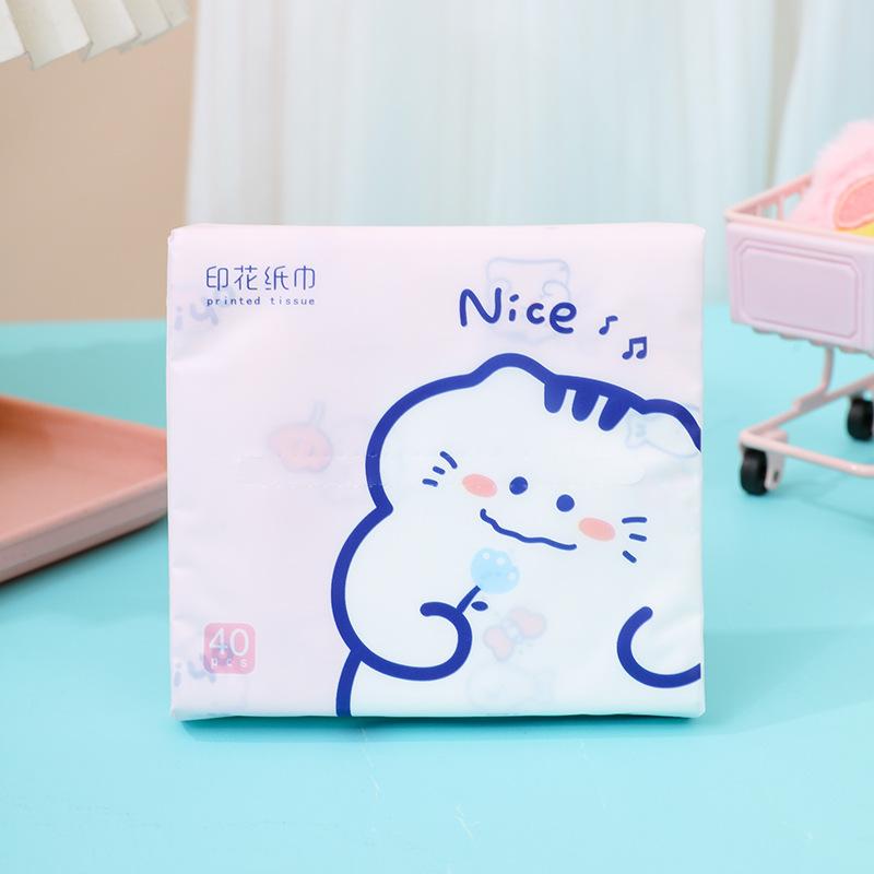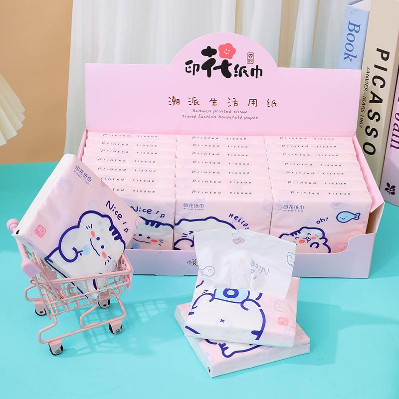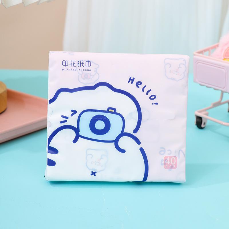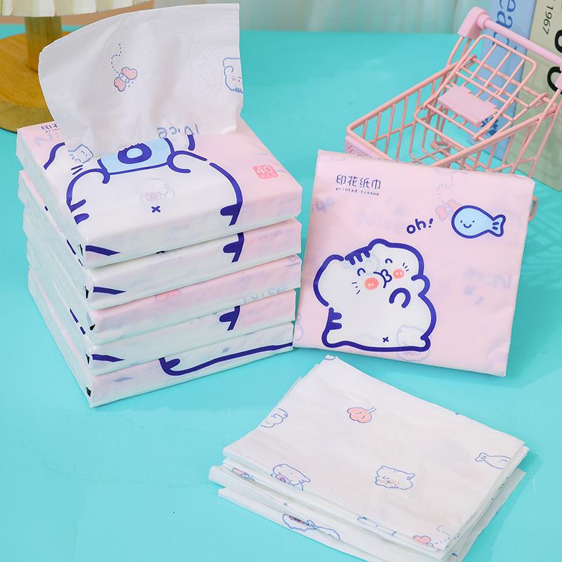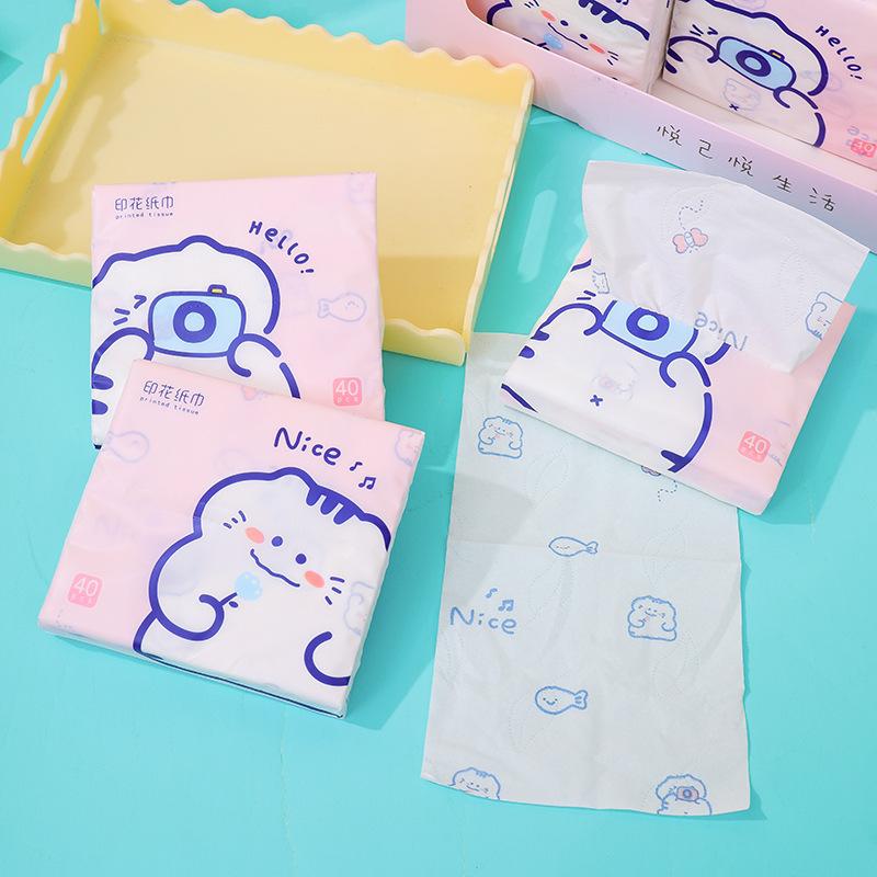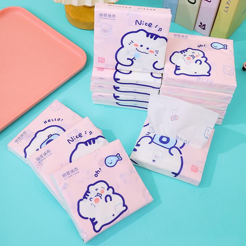 Sen Kiss - Toalla de papel de bolsillo para estudiantes, diseño de dibujos animados, bolsa pequeña, portátil, 40 unidades