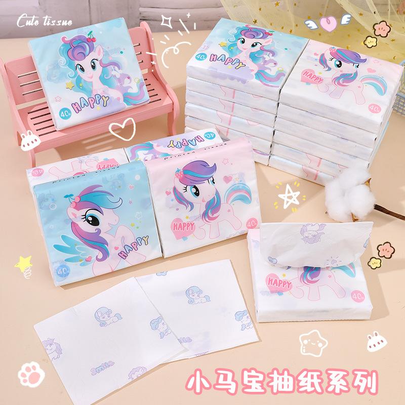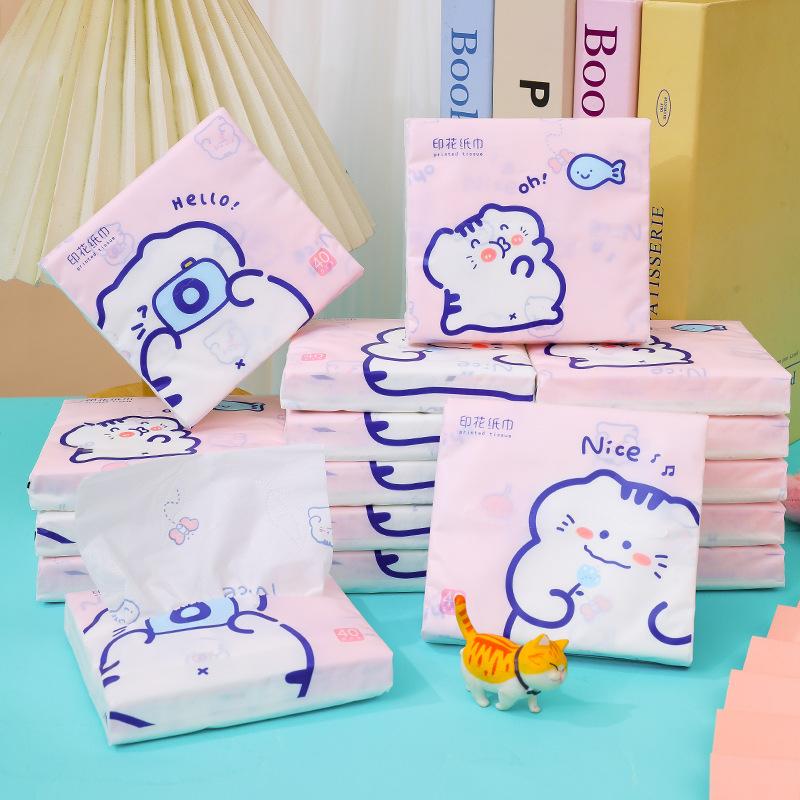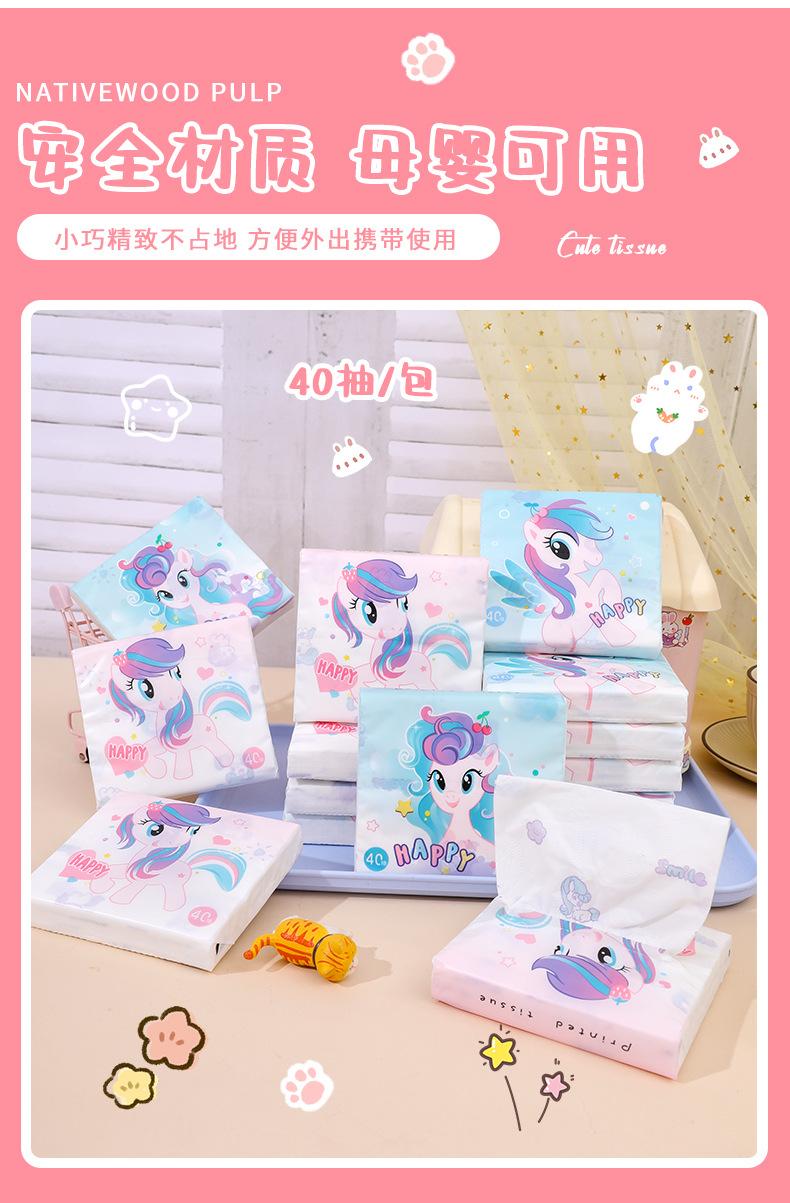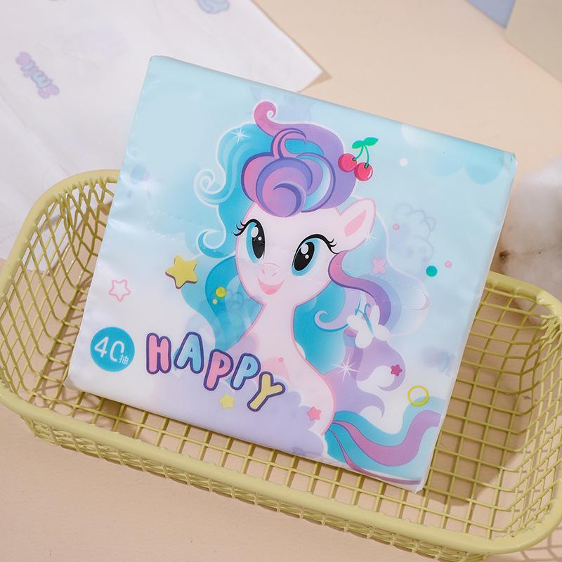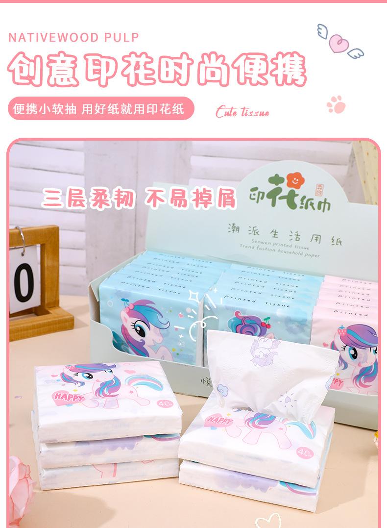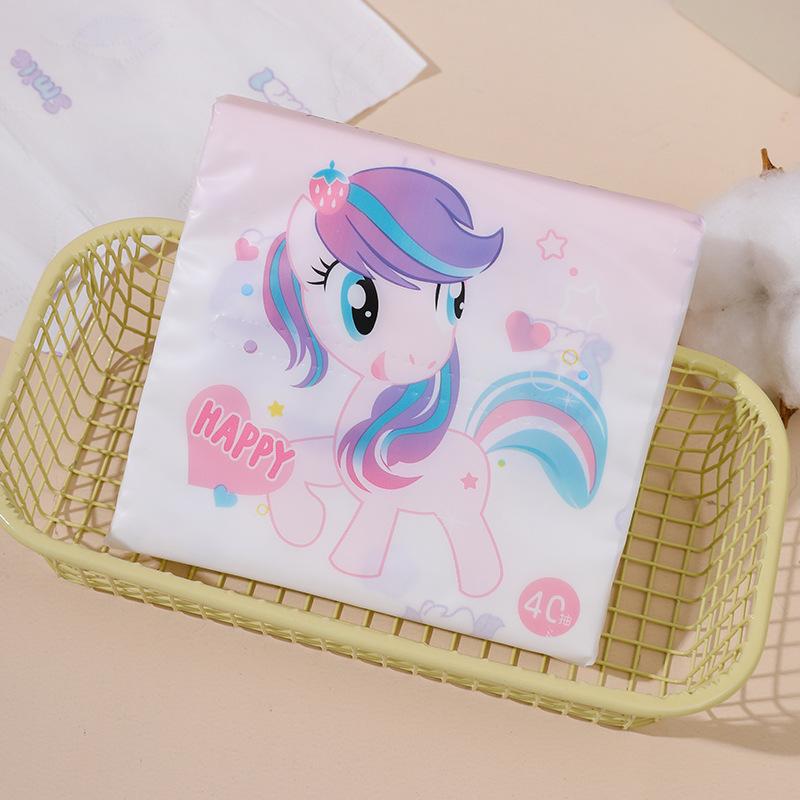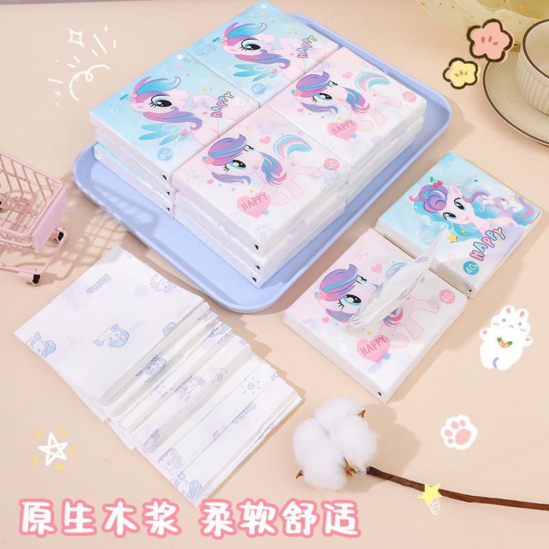 Sen Kiss - Toalla de papel de bolsillo para estudiantes, diseño de dibujos animados, bolsa pequeña, portátil, 40 unidades