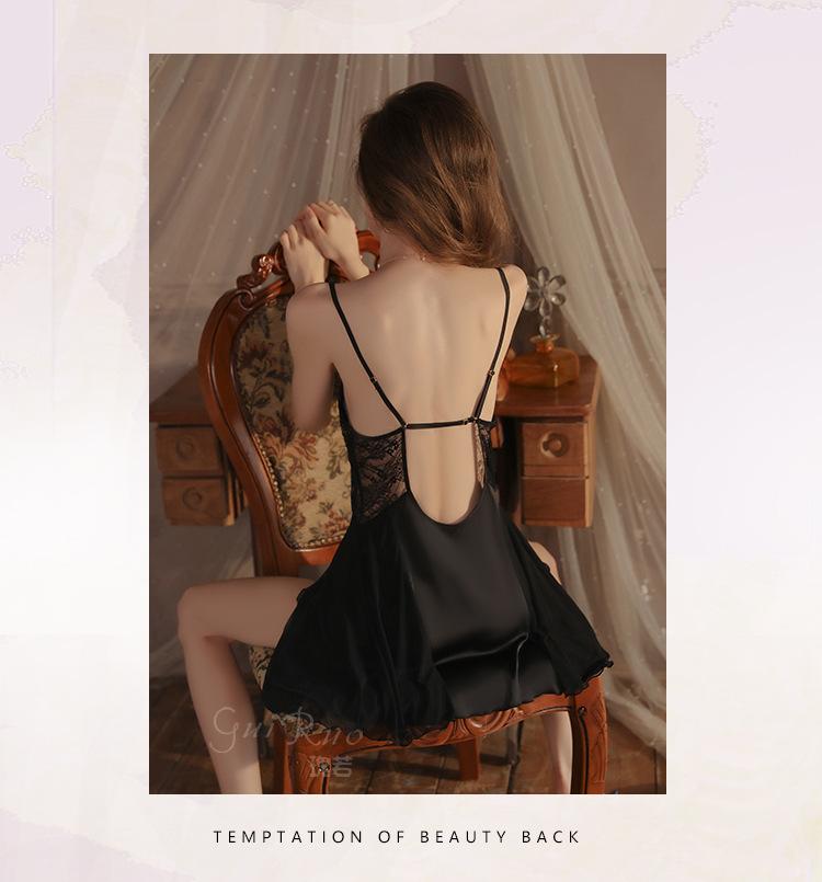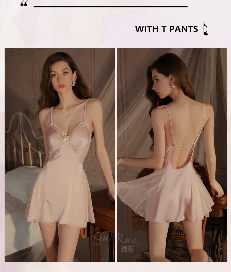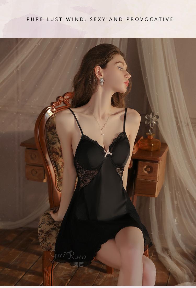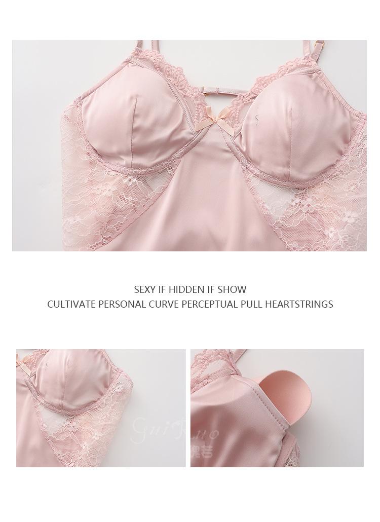 Dz Guiruo Escote en V Profundo Push-Up Plus Almohadilla para Busto Pura Pasión Tentación Ropa de Dormir de Satén con Tirantes Talla Grande para Mujer C4684