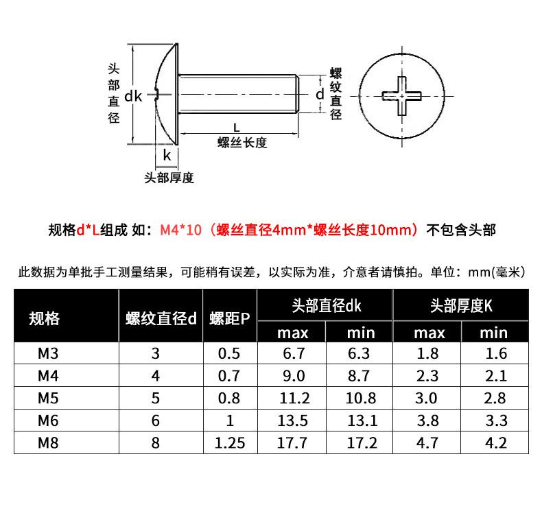 Tornillo de cabeza plana grande en cruz de acero inoxidable 304 TM, tornillo de máquina con cabeza de hongo, perno de cabeza de paraguas M3M4M5M6M8