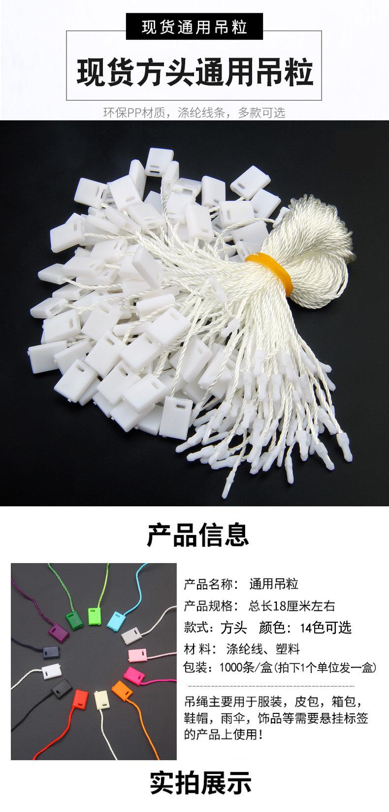 Descripción: Este cordón universal para etiqueta colgante de cabeza cuadrada se vende en unidades de 1, con 1 paquete conteniendo 1000 piezas.