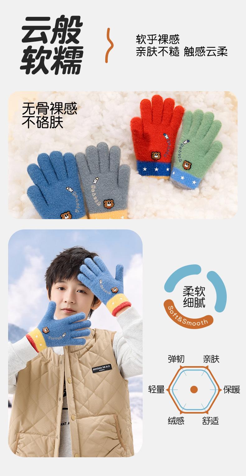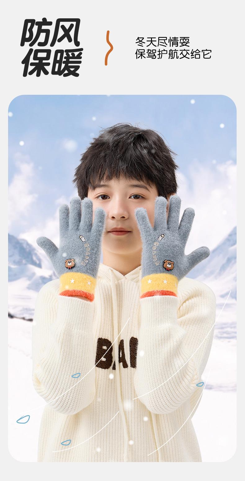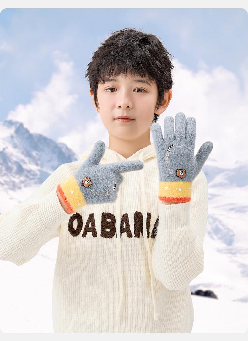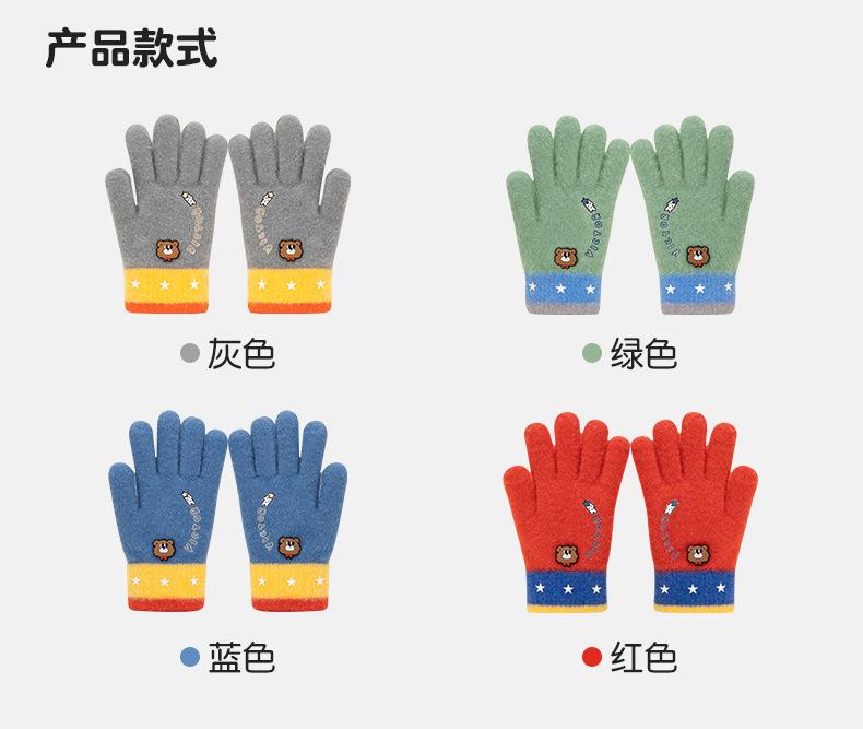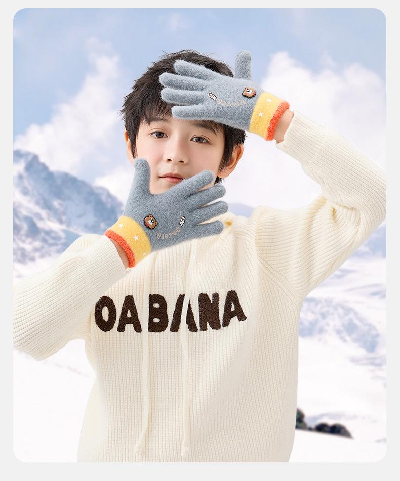 Guantes cálidos de lana para niños, de punto, con dibujos de osos, gruesos y resistentes al frío, para otoño e invierno