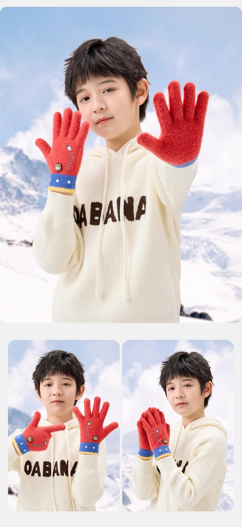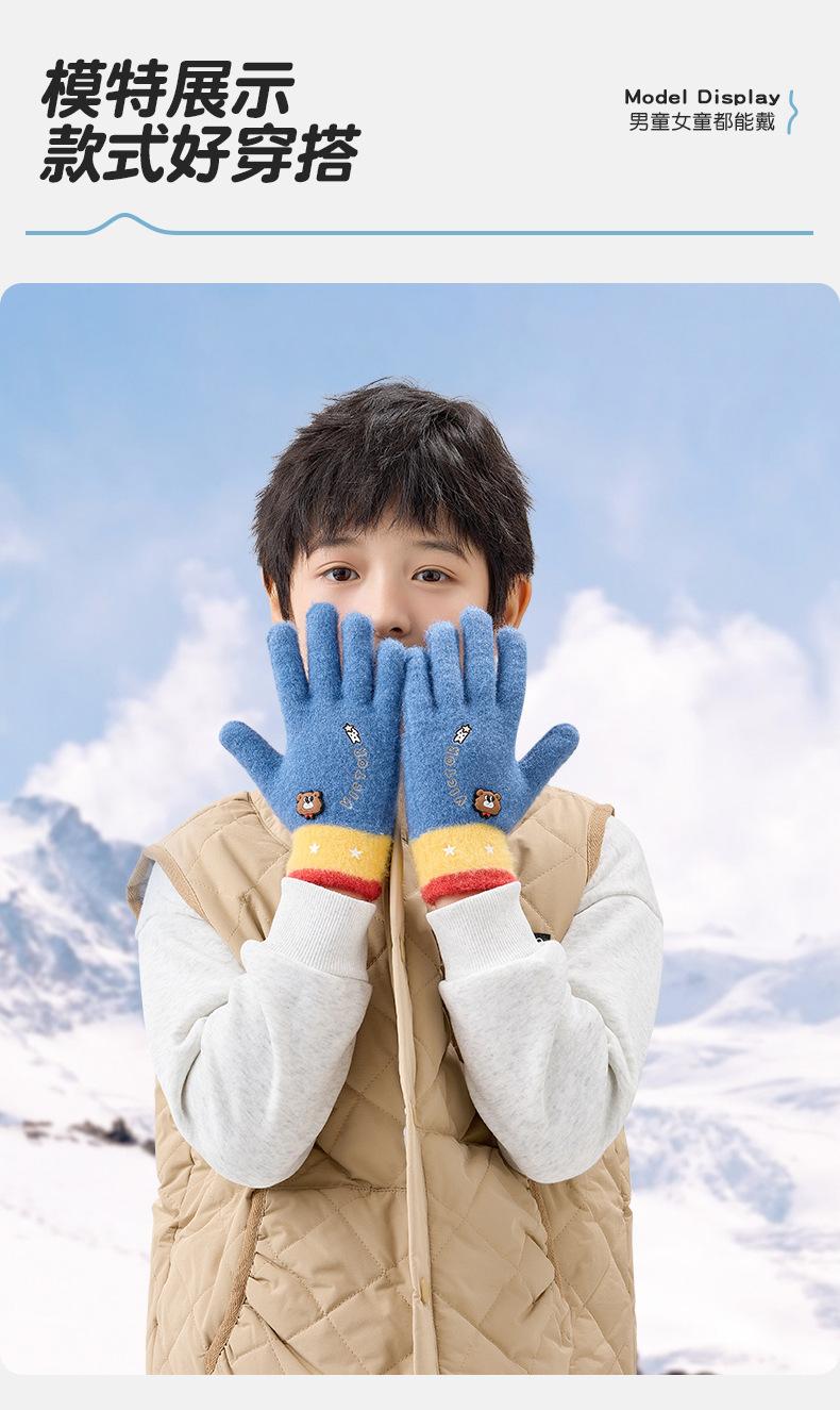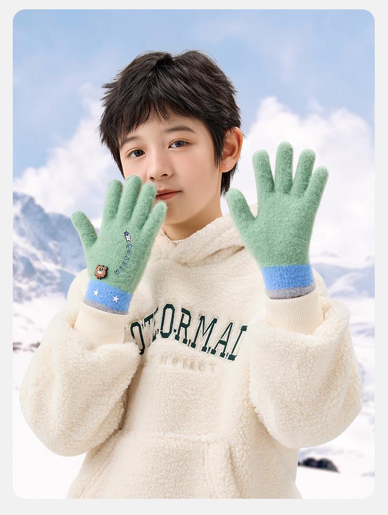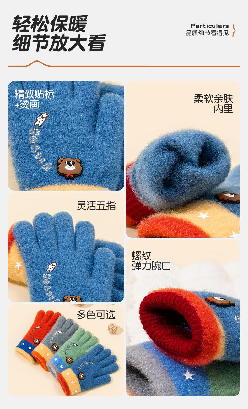 Guantes cálidos de lana para niños, de punto, con dibujos de osos, gruesos y resistentes al frío, para otoño e invierno
