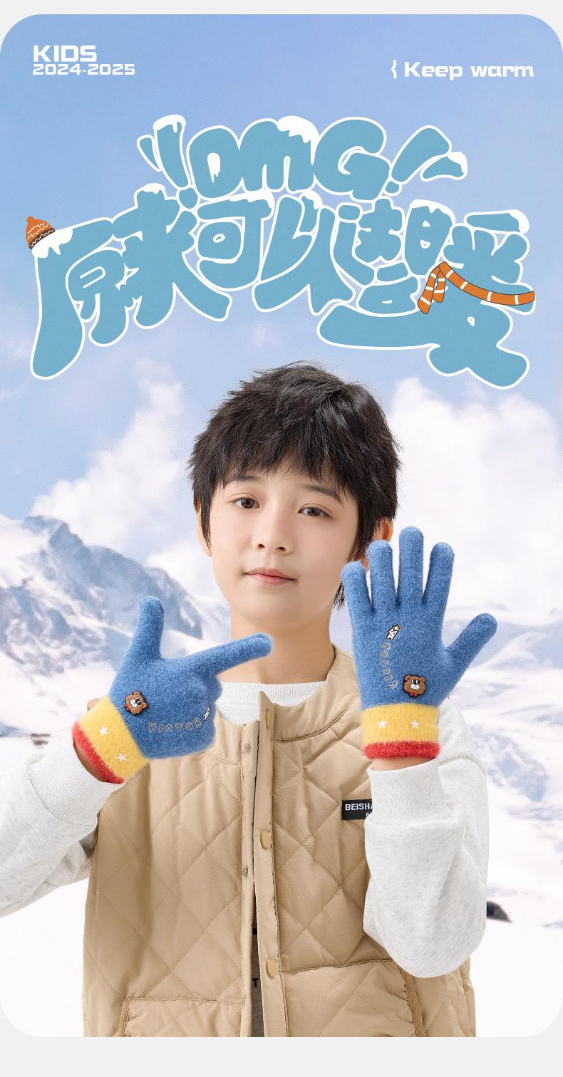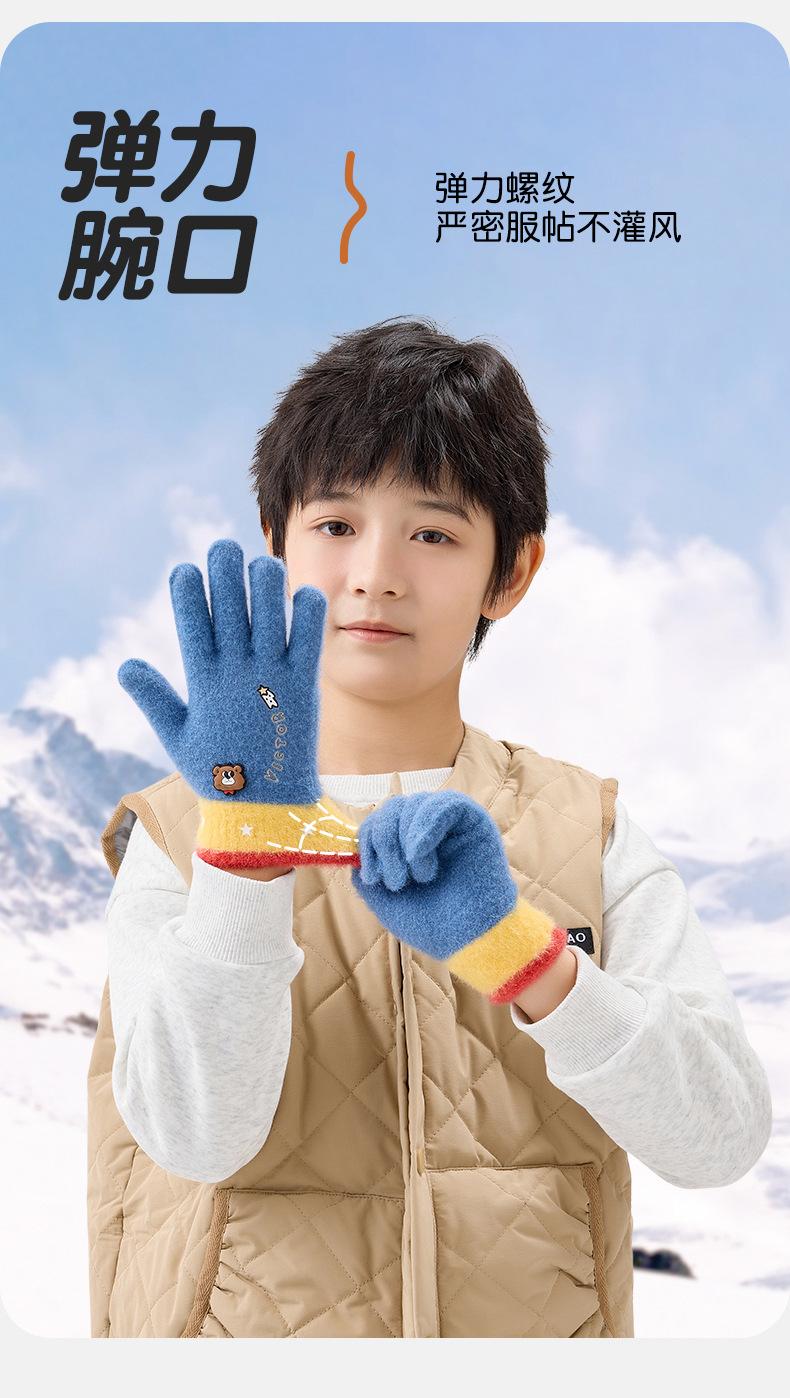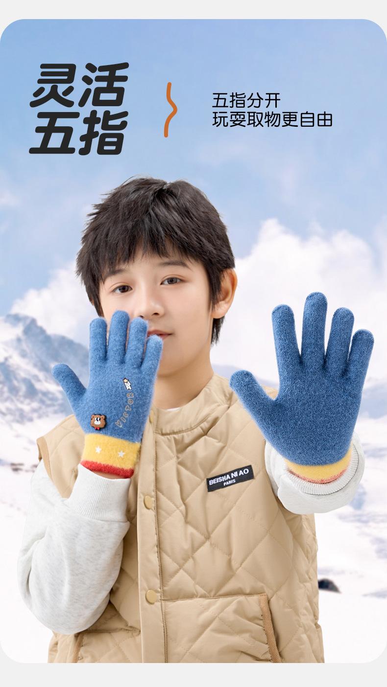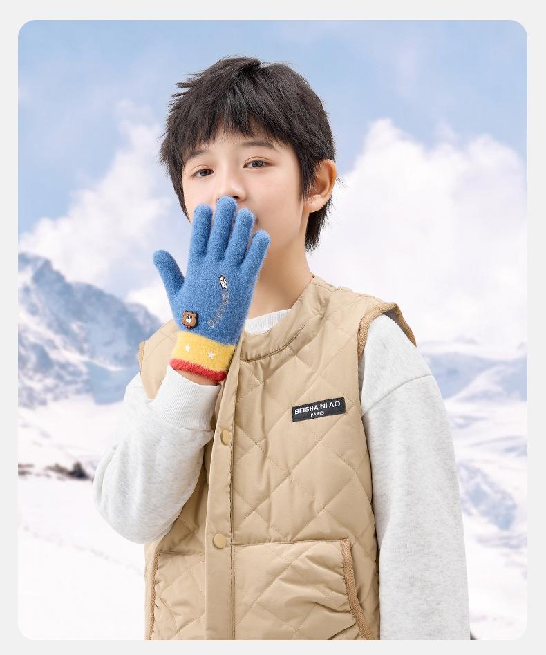 Guantes cálidos de lana para niños, de punto, con dibujos de osos, gruesos y resistentes al frío, para otoño e invierno