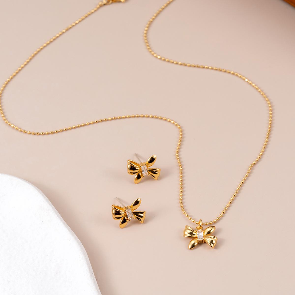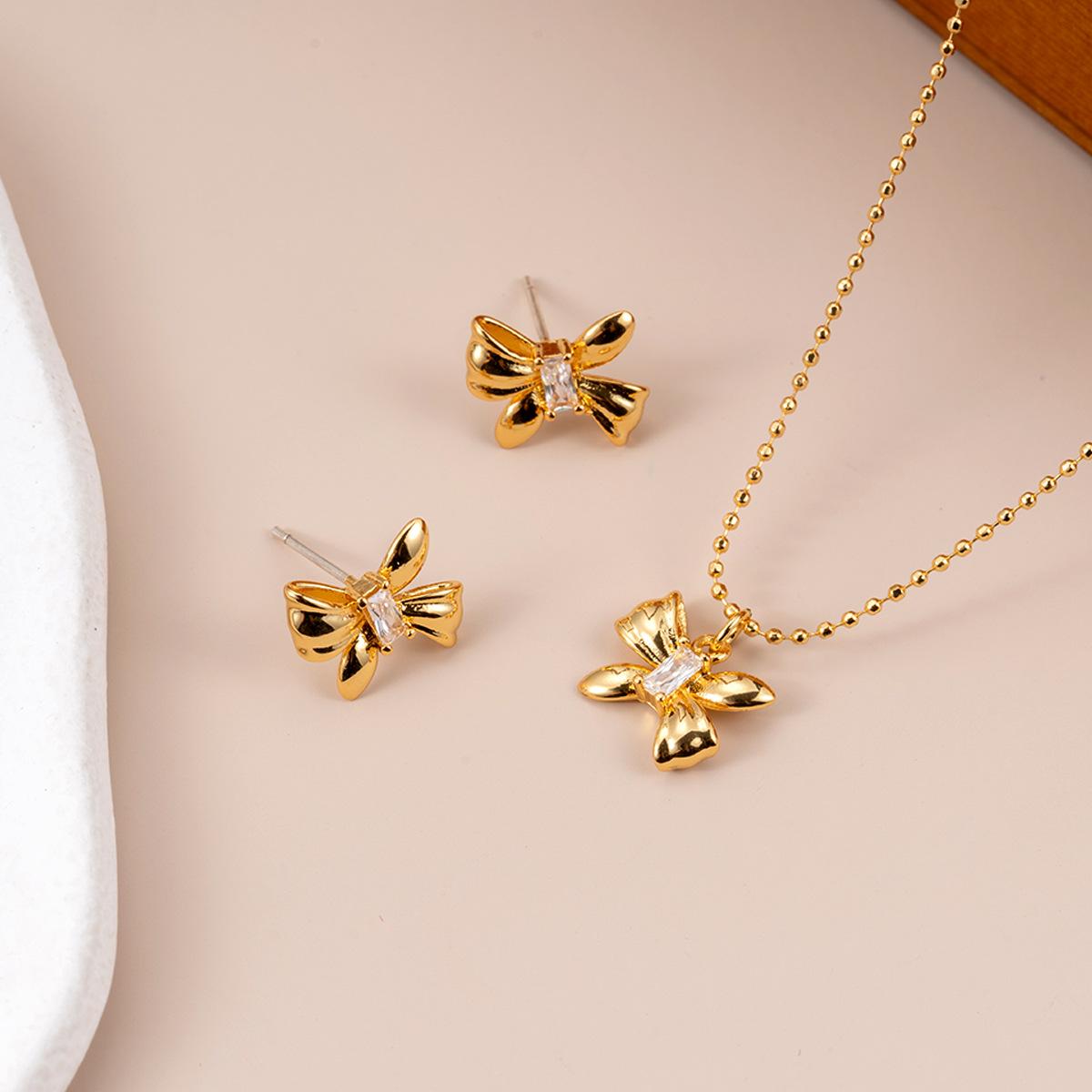 Collar con colgante de lazo chapado en oro de 18 quilates de latón con temperamento de viento frío para mujer, estilo transfronterizo de Europa y Estados Unidos