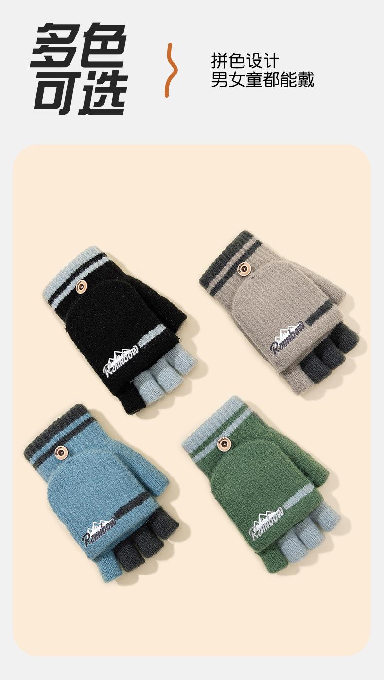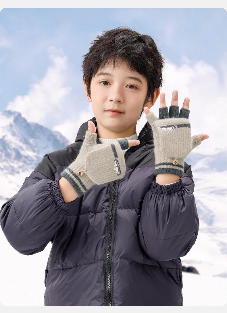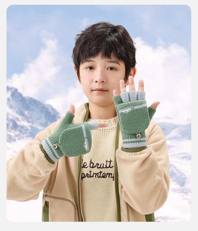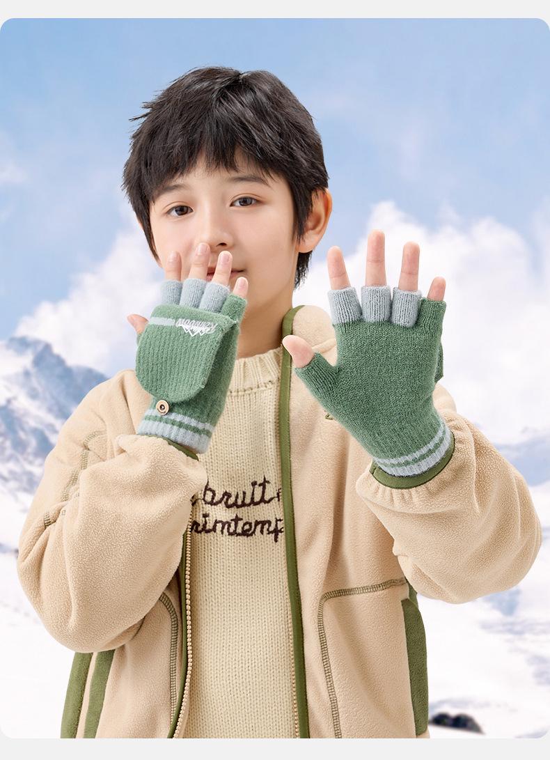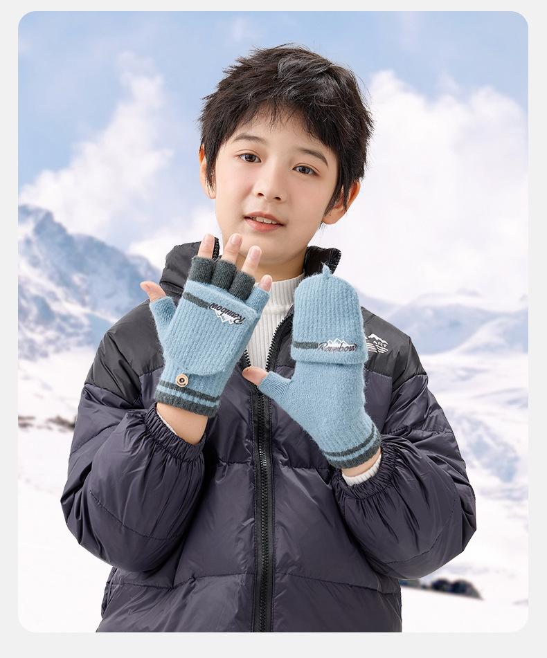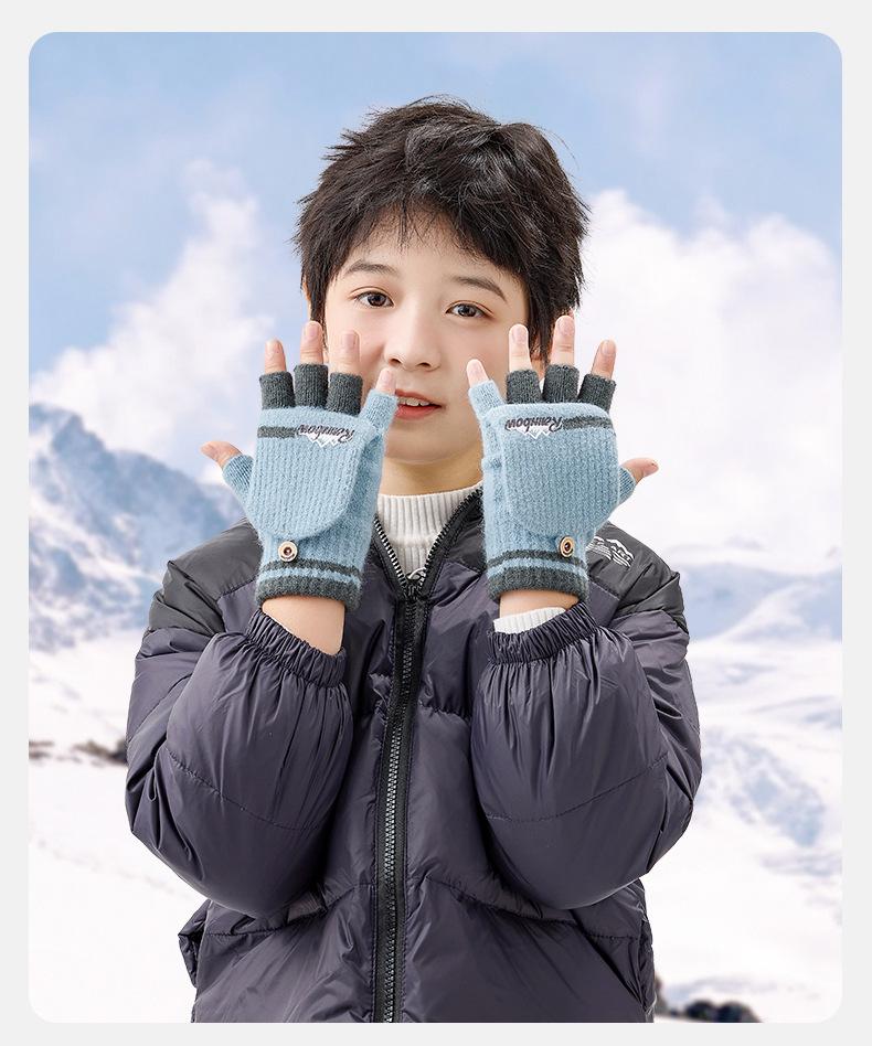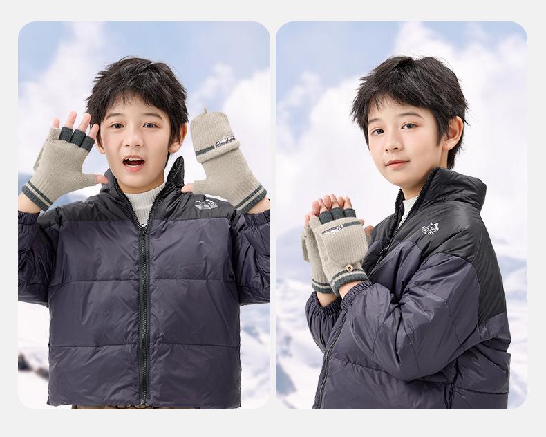 Otoño e Invierno para Hombre Niños Grandes Lana Medio Dedo Cubierta Plegable Dedo Abierto Estudiantes Escritura Cálido A Prueba de Frío Engrosado Niños Guantes de Punto