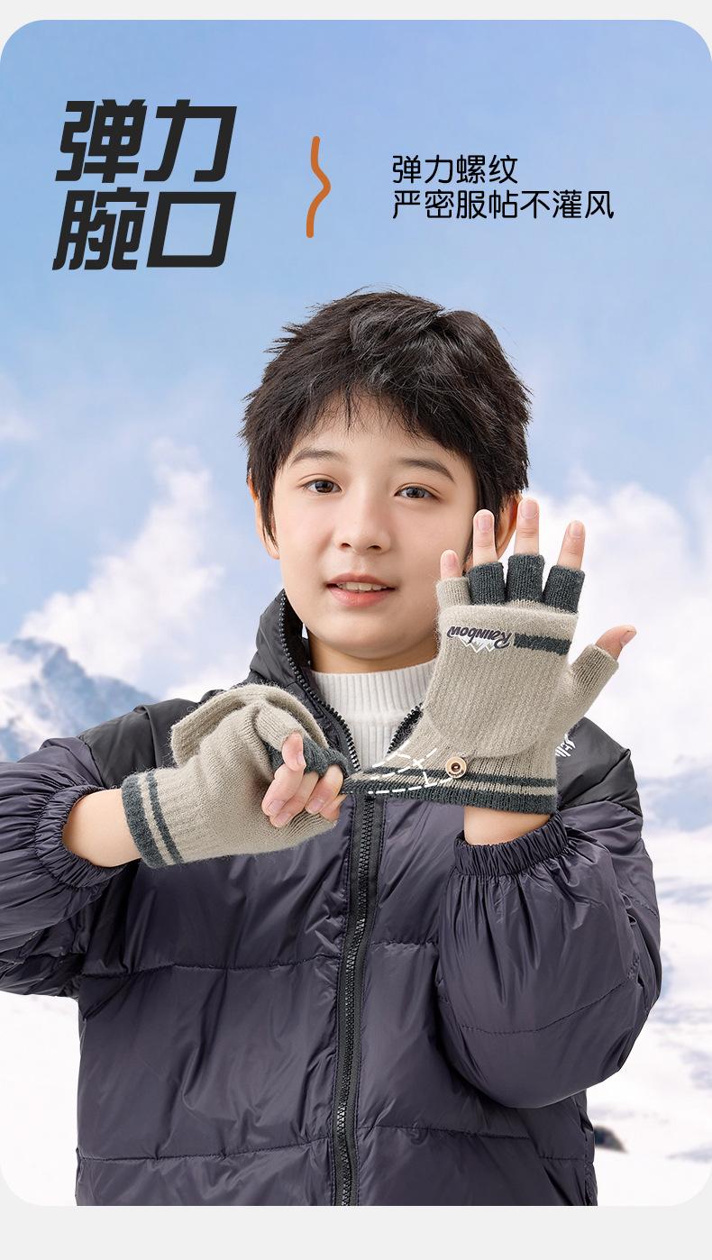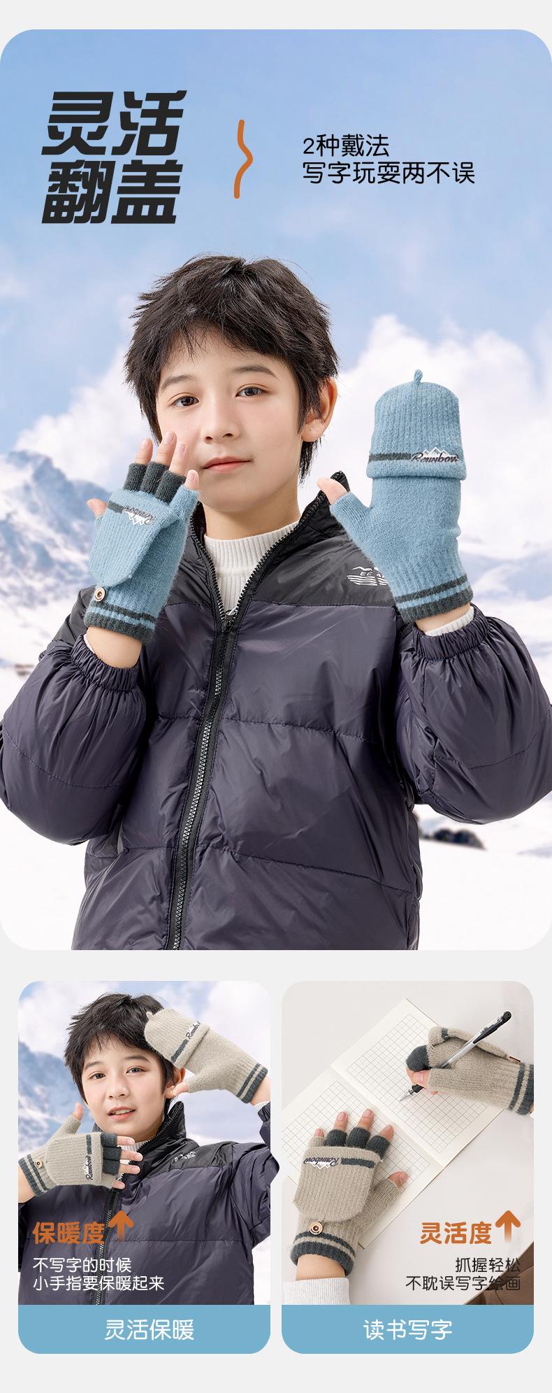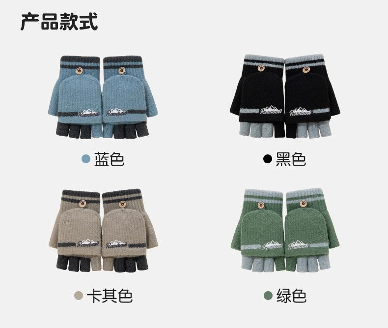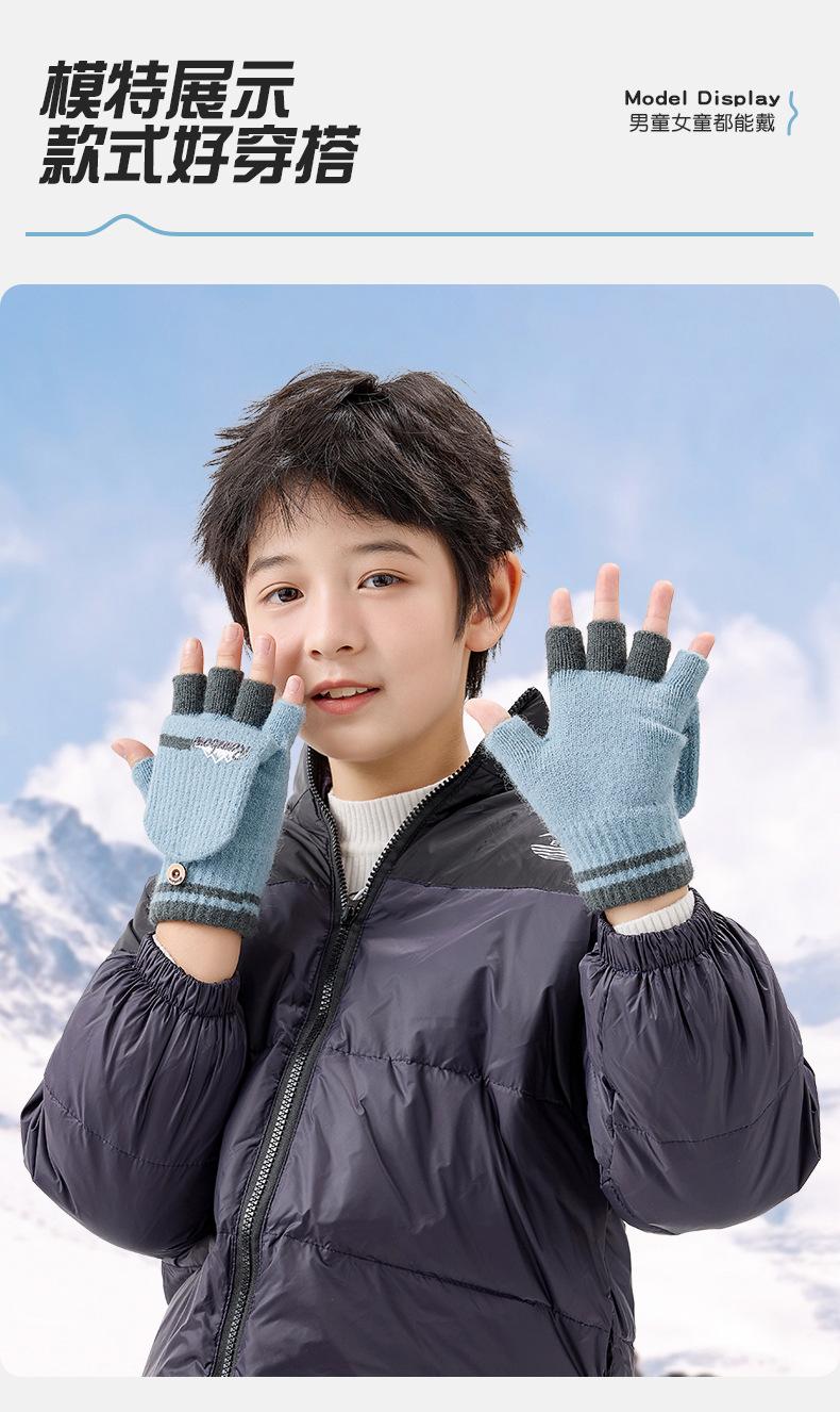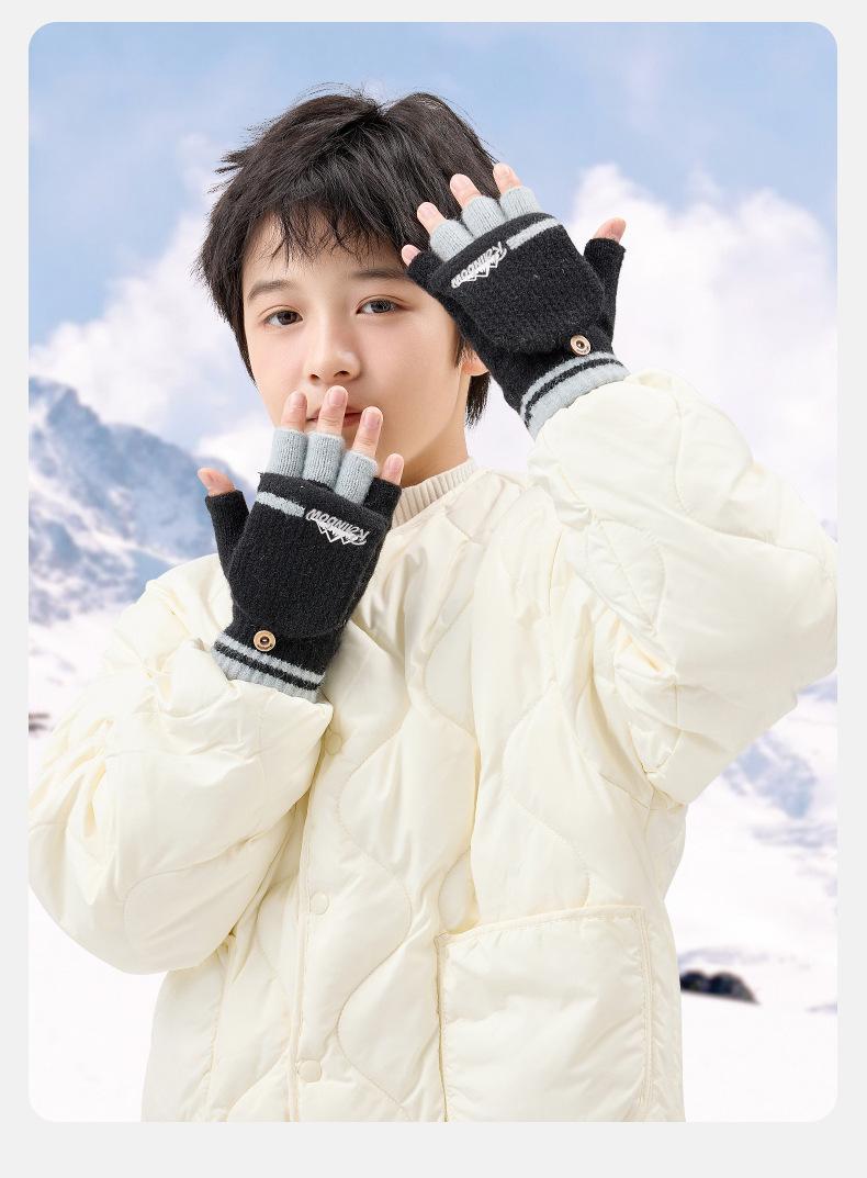 Otoño e Invierno para Hombre Niños Grandes Lana Medio Dedo Cubierta Plegable Dedo Abierto Estudiantes Escritura Cálido A Prueba de Frío Engrosado Niños Guantes de Punto