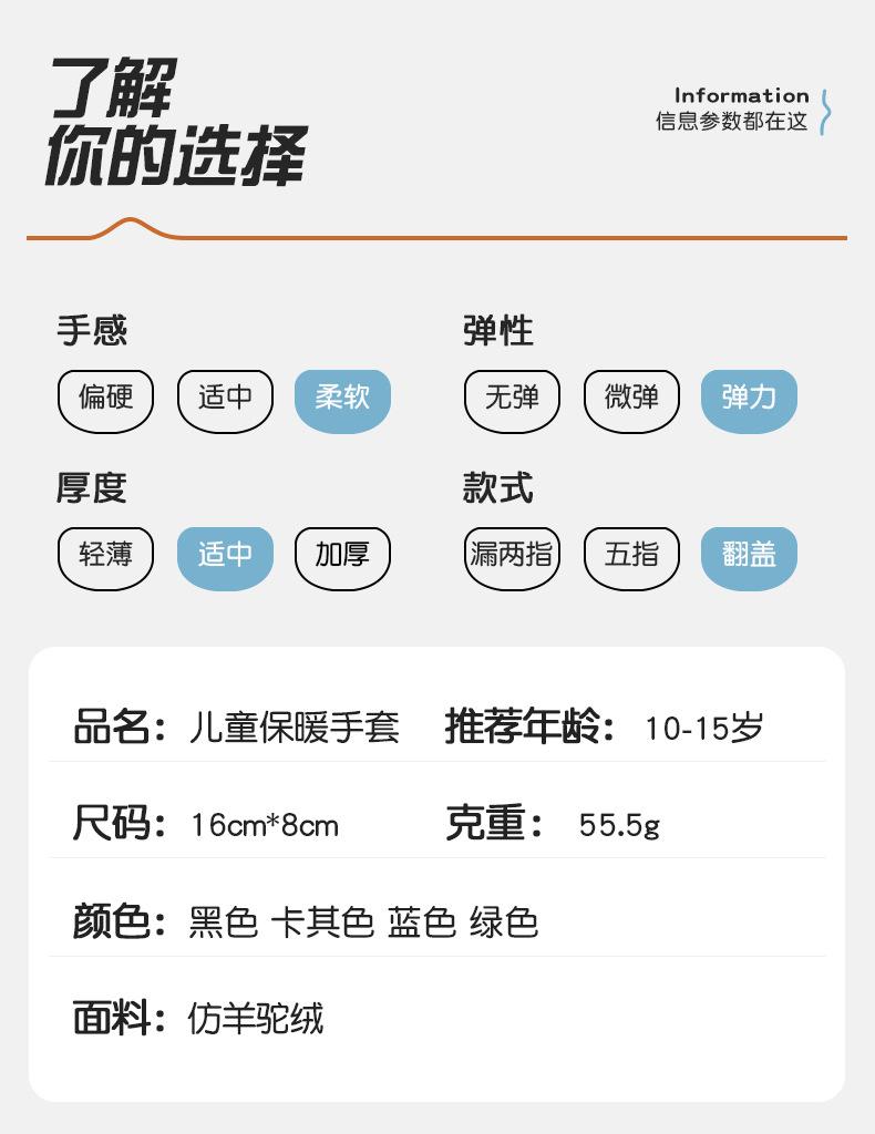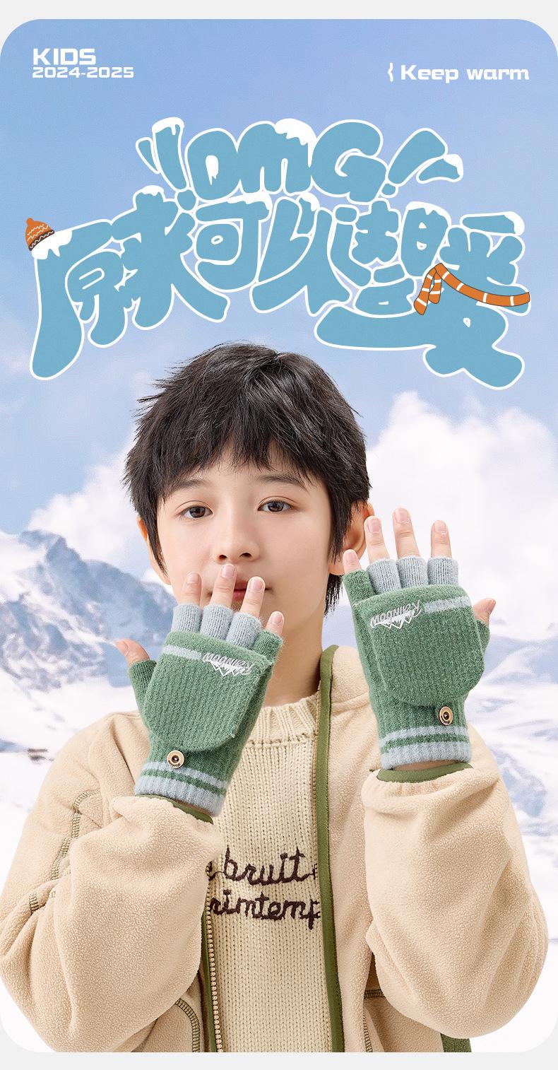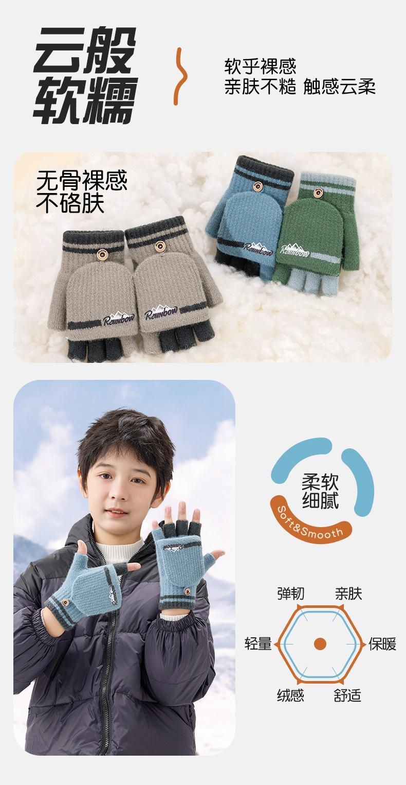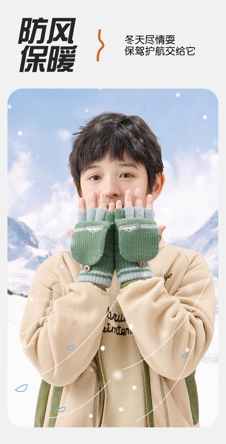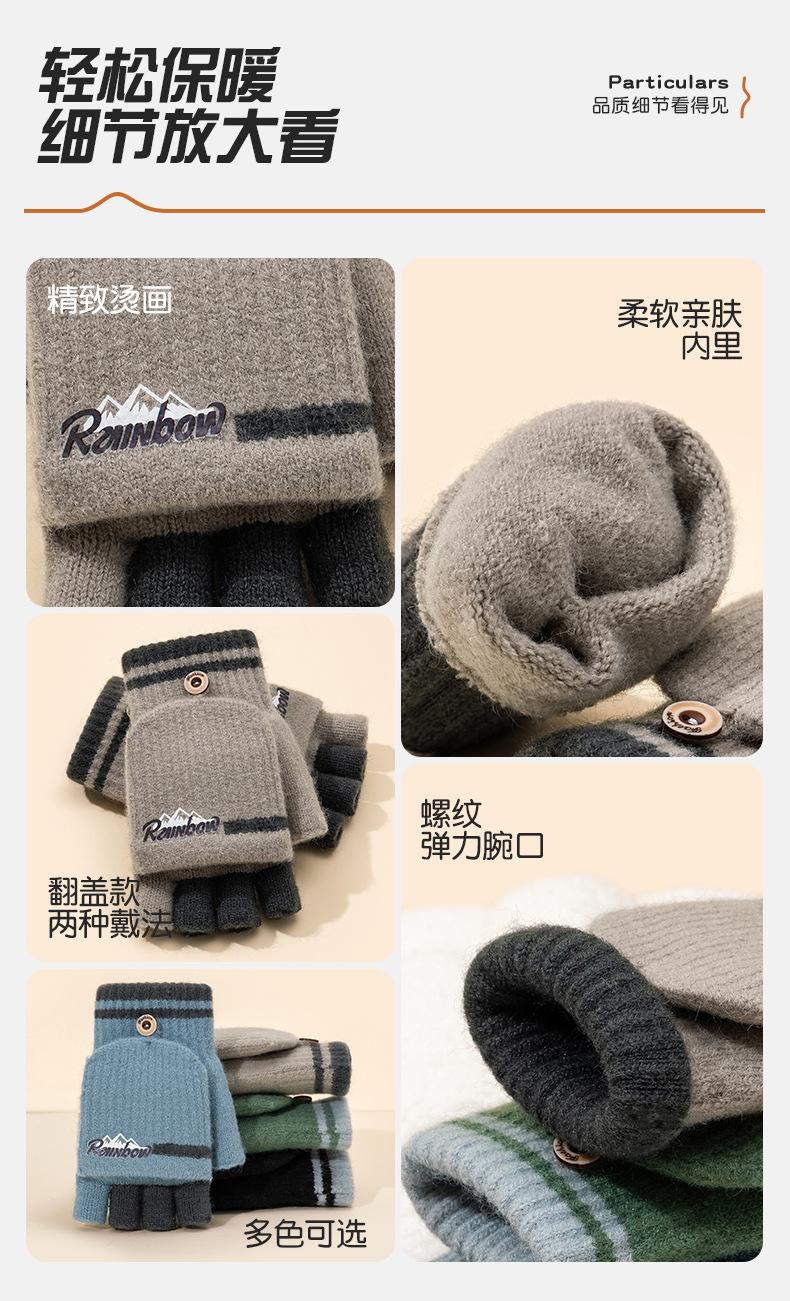Otoño e Invierno para Hombre Niños Grandes Lana Medio Dedo Cubierta Plegable Dedo Abierto Estudiantes Escritura Cálido A Prueba de Frío Engrosado Niños Guantes de Punto