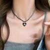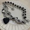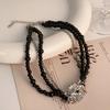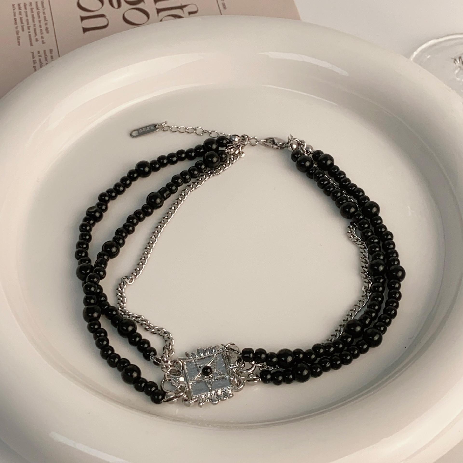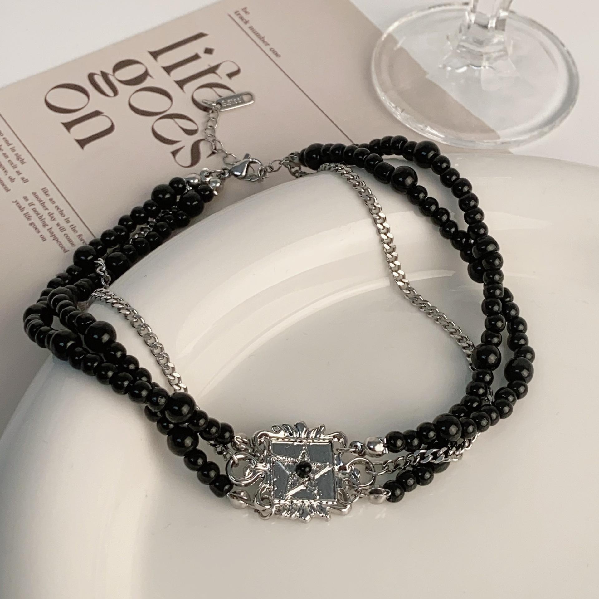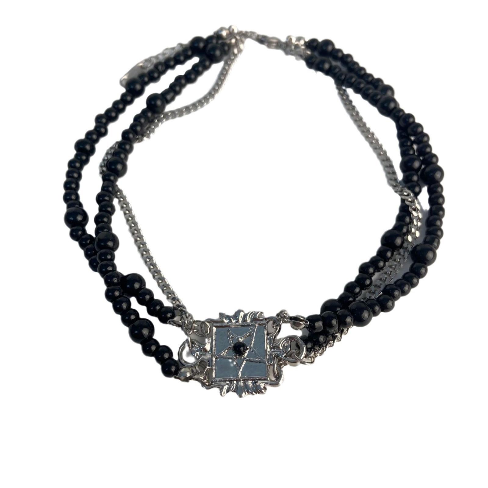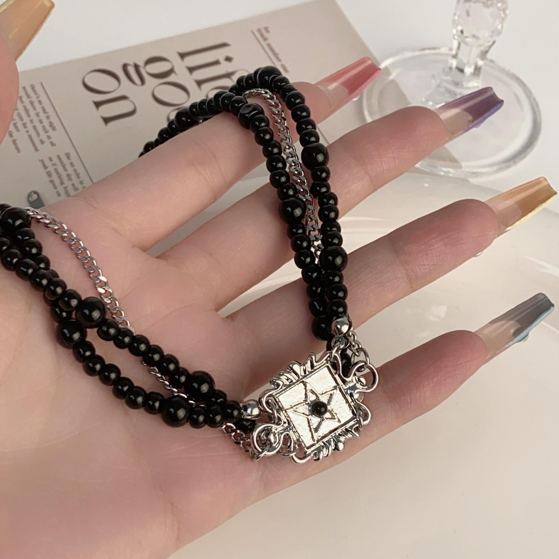 Collar multicapa de cuentas con estrella de cinco puntas retro europeo y americano, diseño simple, dulce, cool, estilo oscuro, colgante, cadena para clavícula, joyería