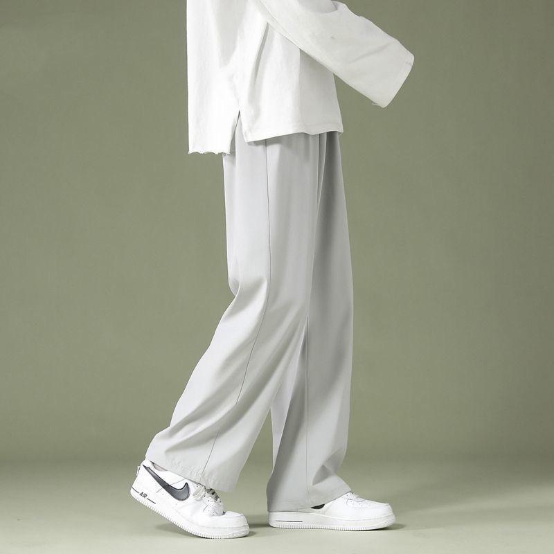 Pantalones Rectos Delgados de Seda de Hielo de Verano Pantalones Recortados Sueltos Estudiante Color Sólido Casual Versátil Elementos Populares Pantalones Casuales