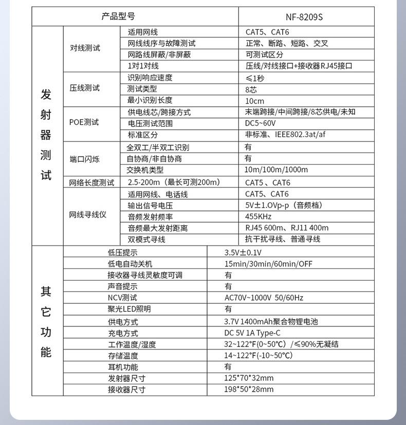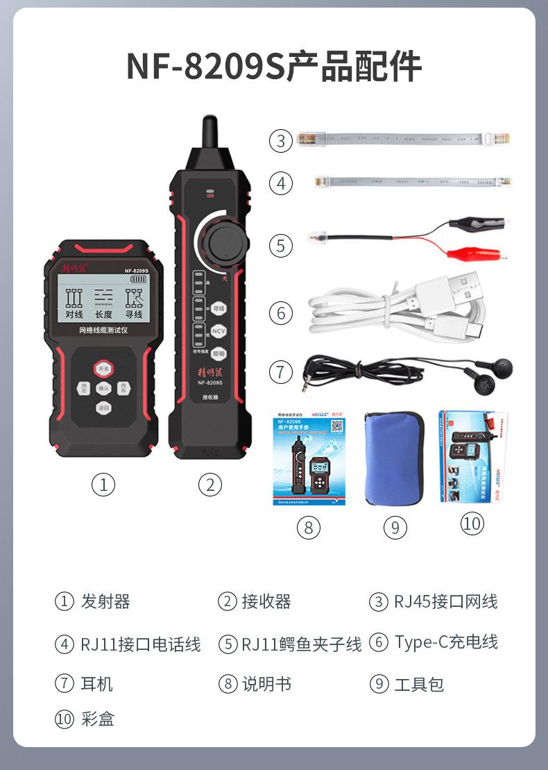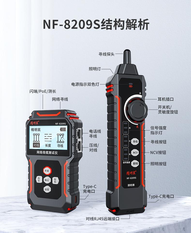 Mouse Inteligente Personalizado Nf-8209S Rastreador de Cable de Red Probador de Cable de Red Apantallado Rastreador de Cable PoE Fuente de Alimentación PoE