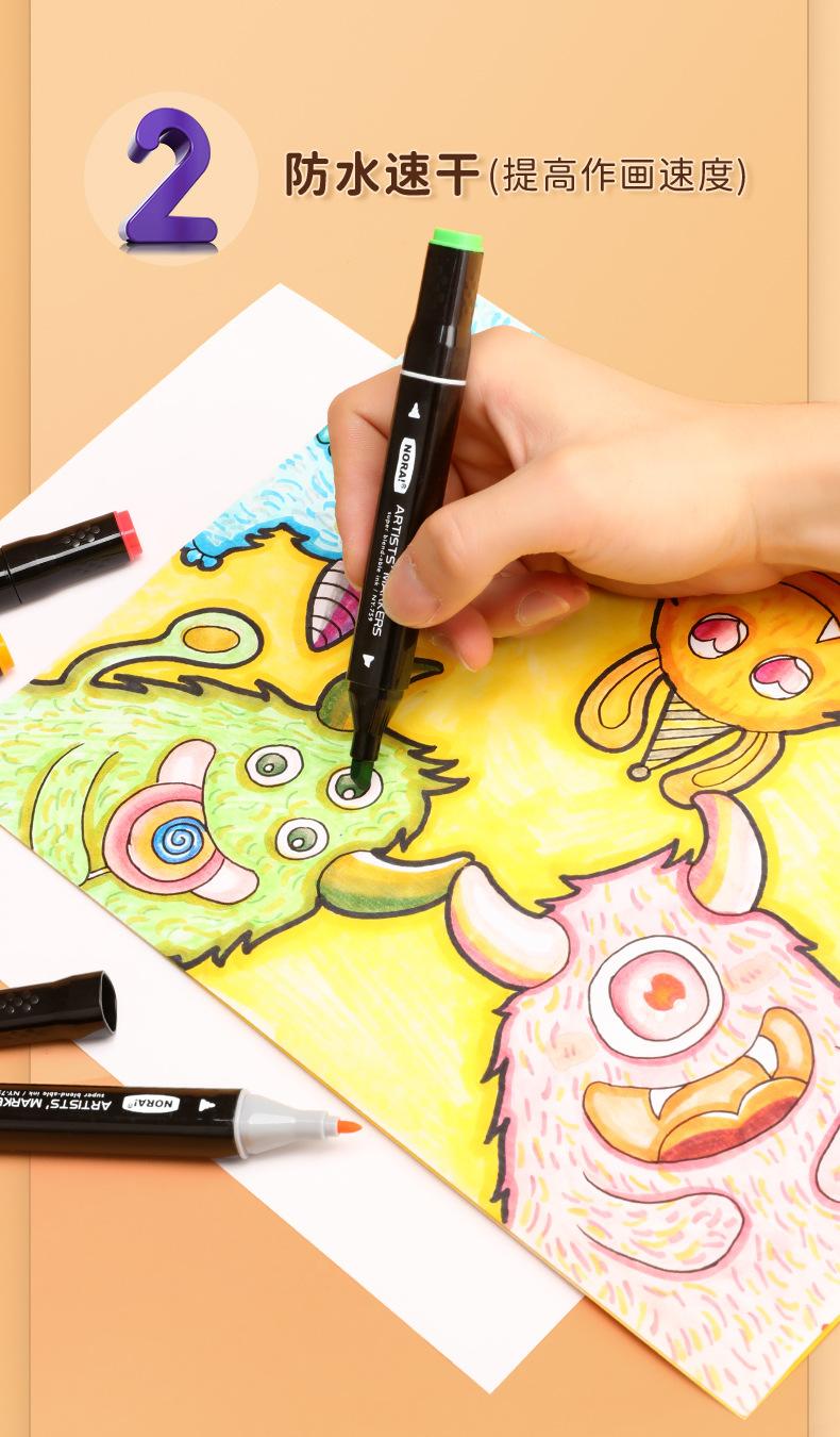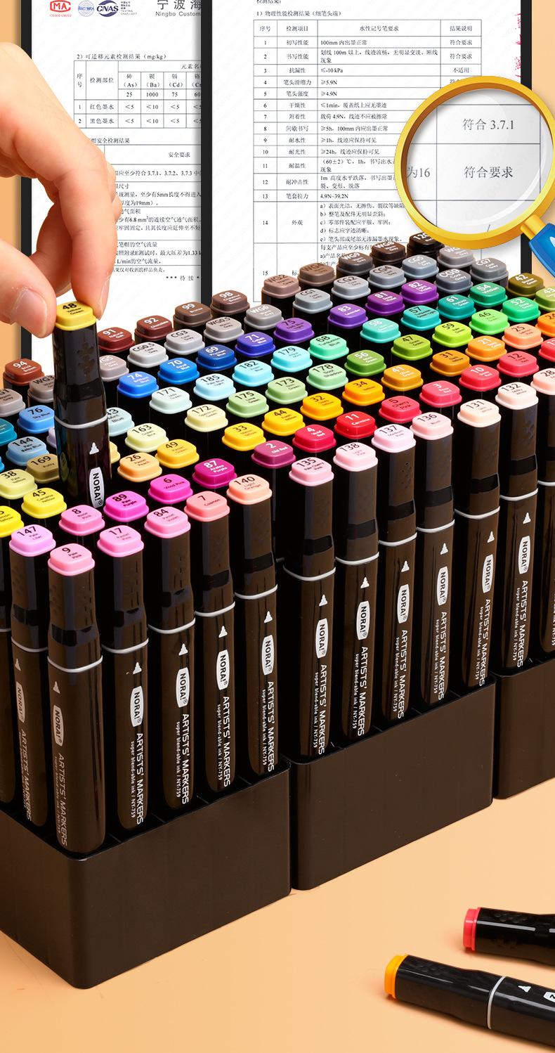 Set de Marcadores de Doble Punta a Base de Aceite Noya Personalizado Impermeable de Secado Rápido Pincel Estudiante Barril de Cuatro Esquinas de Gran Capacidad Pluma Acuarela