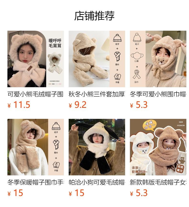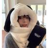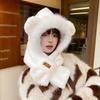 Conjunto de tres piezas de gorro y bufanda de peluche de oso para mujer, jersey grueso y cálido para ciclismo, con protectores auditivos y gorro de invierno.