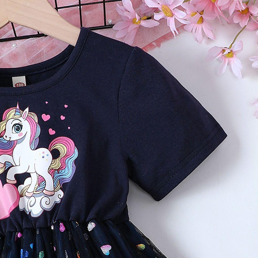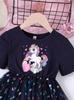 Comercio Exterior Personalizado Niñas Versión Coreana 2025 Nuevo Vestido de Verano para Niños Vestido de Princesa de Malla de Manga Corta con Estampado de Dibujos Animados