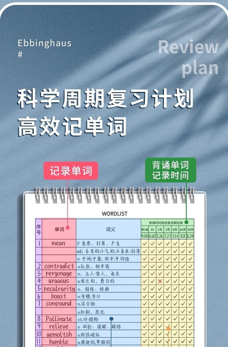 Libro de Palabras en Inglés Libro de Memoria de Palabras Curva de Memoria de Ebbinghaus Estudiantes Universitarios Examen de Ingreso de Posgrado Dictado Memorización