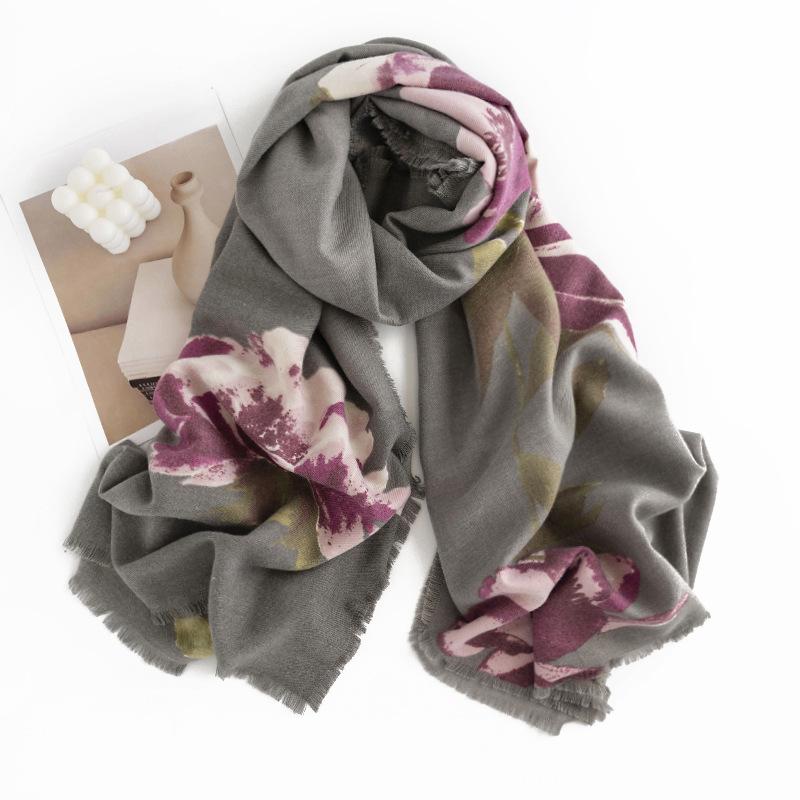Bufanda 2025 Nuevo Estilo Étnico Retro Bufanda de Invierno para Mujer Bufanda Cálida de Cachemira Imitación Chal Floral Bufanda a Prueba de Frío