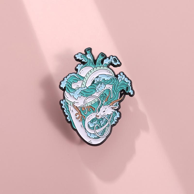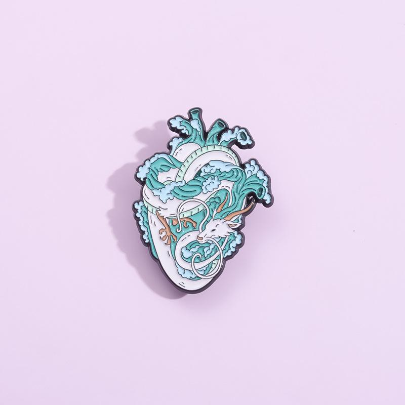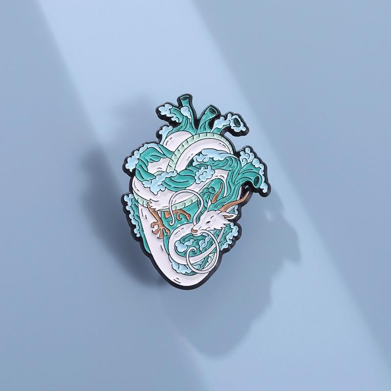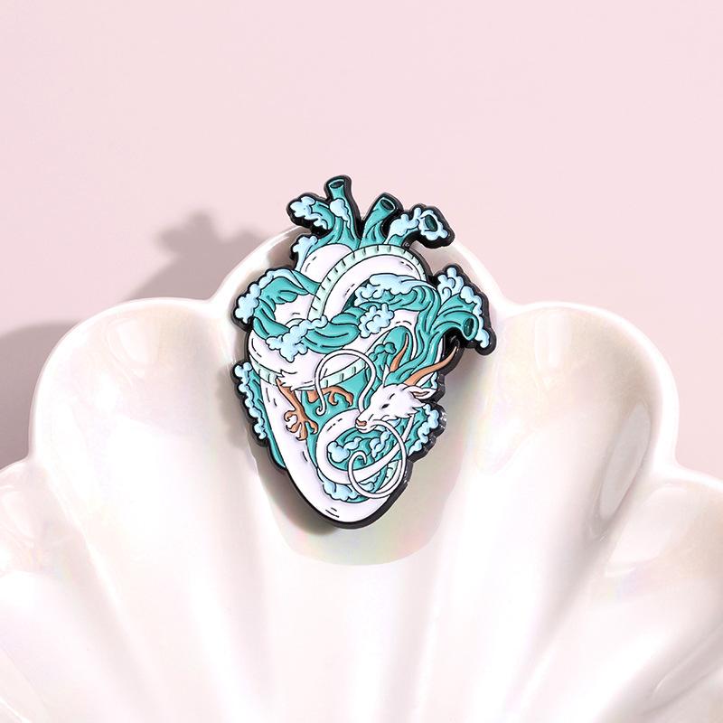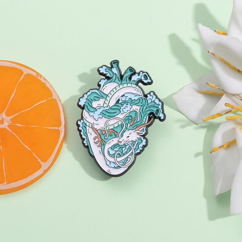 Broche con forma de corazón de ola oceánica y paisaje azul, accesorio de ropa, insignia de metal, aguja para collar, regalo exquisito, nuevo producto