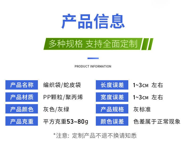 Bolsas Tejidas de Plástico, Bolsas de Embalaje, Bolsas de Transferencia, Bolsas de Piel de Serpiente Personalizadas para Mudanzas Exprés, Desechos de Construcción, Portátiles y Engrosadas