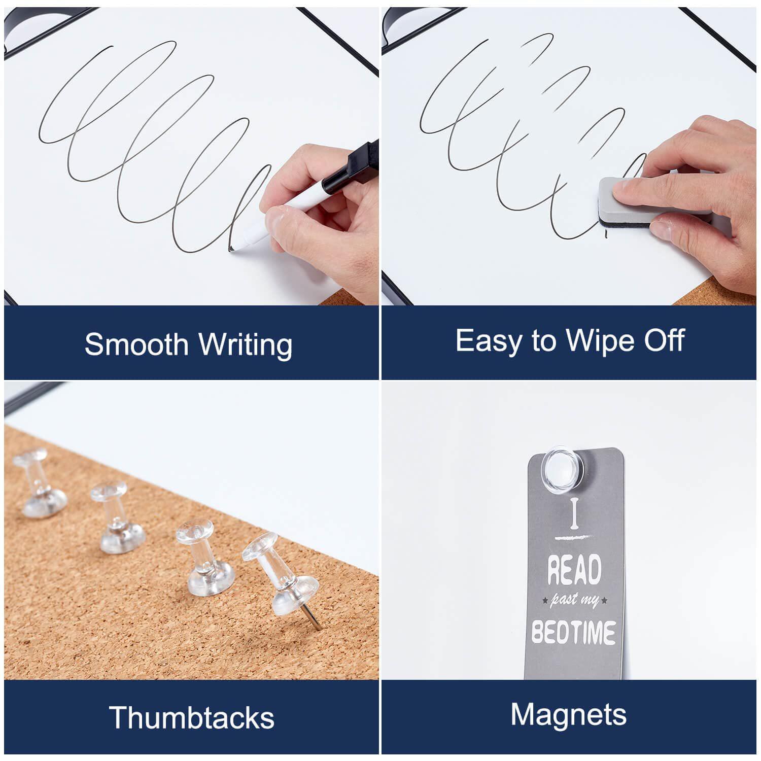 Amazon Oficina Pizarra Magnética Blanca Combinación de Corcho con Asa Decoración del Hogar Tablero de Mensajes Borde Delgado para Colgar en la Pared Pizarra Blanca
