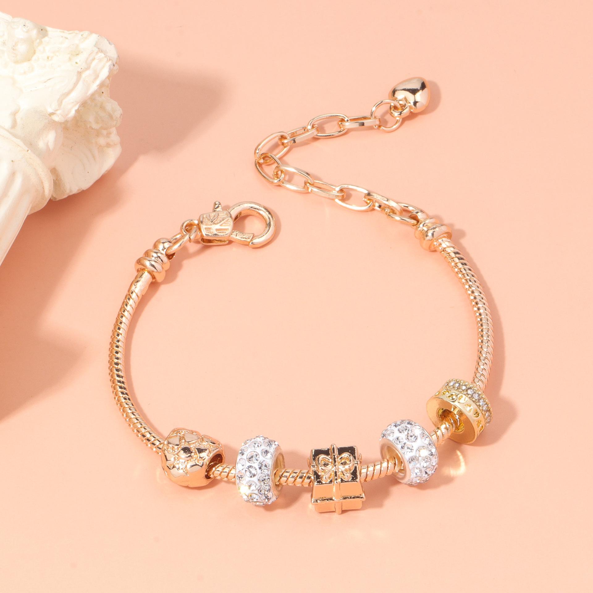 Panjia nueva pulsera de diamantes de punta de oro rosa hueca para mujer con temperamento encantador que combina con todo, pulsera con cierre de langosta, suministro de fábrica